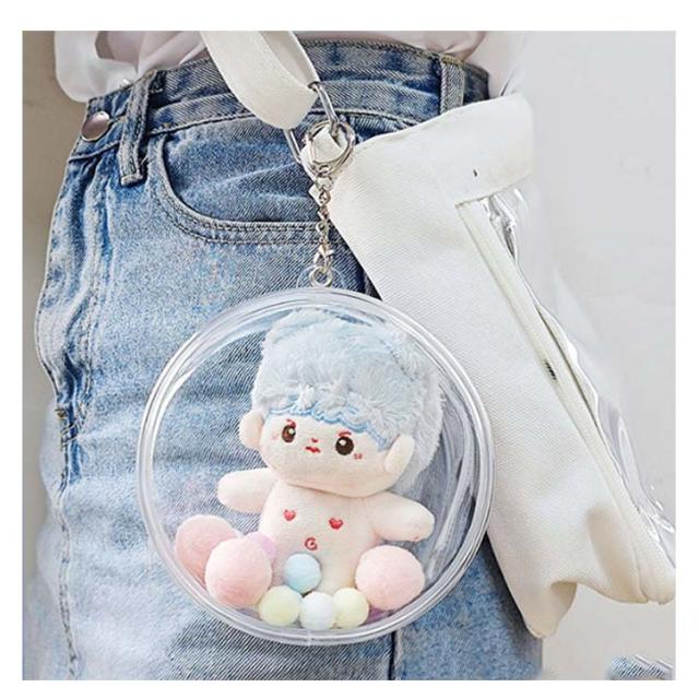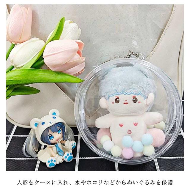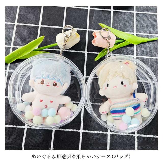 | 【2セット入り】 【セット内容:ポーチ+フック+毛玉】 ぬいぐるみ用透明な柔らかいケース(バッグ) 人形をケースに入れ、水やホコリなどからぬいぐるみを保護 | |