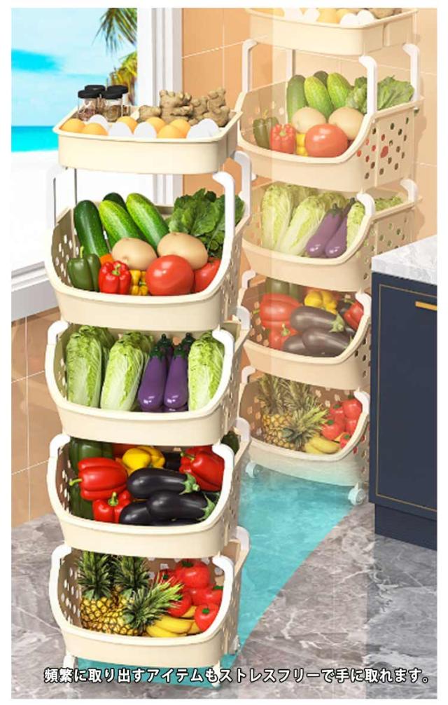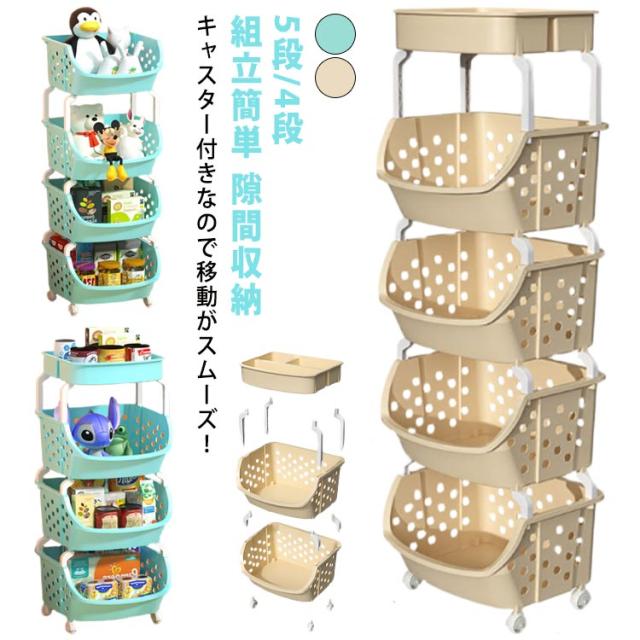 キッチンワゴン キャスター付き 収納ラック キッチン 収納 送料無料 マルチワゴン 5段 4段 組立簡単 ラック 北欧 隙間収納 バスケット キッチンストッカー おしゃれ バスケット ワゴン サイドワゴン 玩具収納 通気 多機能