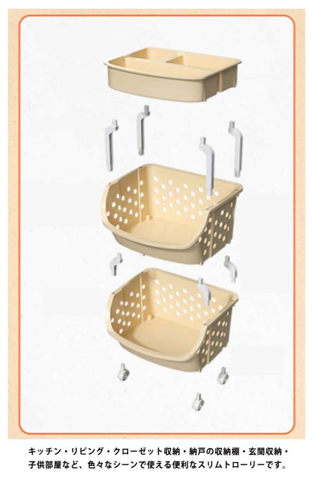 | キャスター付きなので移動がスムーズ! 必要な時に必要な場所に移動できる便利な収納ワゴン。 スリムなのに驚きの収納力も魅力! 2輪キャスター付きで移動がラクラク! キャスター移動で、掃除の際に邪魔なりません! シンプルなデザインで置く場所を選びません! 頑丈なプラスチック製で軽さと強度の両方を実現! 収納時の見た目がすっきりするので、見せないキッチン収納に最適です。 頻繁に取り出すアイテムもストレスフリーで手に取れます。 落下の心配なしに、安心してサッと必要なものを取り出せるので、ストレスフリーで調理に没頭できます。 主張しすぎないデザインで、他の家具と並べた時に悪目立ちしません。 キッチン・リビング・クローゼット収納・納戸の収納棚・玄関収納・子供部屋など、色々なシーンで使える便利なスリムトローリーです。 | |