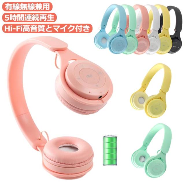 「送料無料」 ワイヤレスヘッドホン Bluetoothヘッドホン Bluetooth5.0 子供用 大人用 HiFi 高音質 マイク内蔵 オーバーイヤーヘッドホン 低音強化 イヤホン ヘッドセット ワイヤレスヘッドホン 有線 軽量 密閉型 通話対応 マイク付き 無線 マカロン