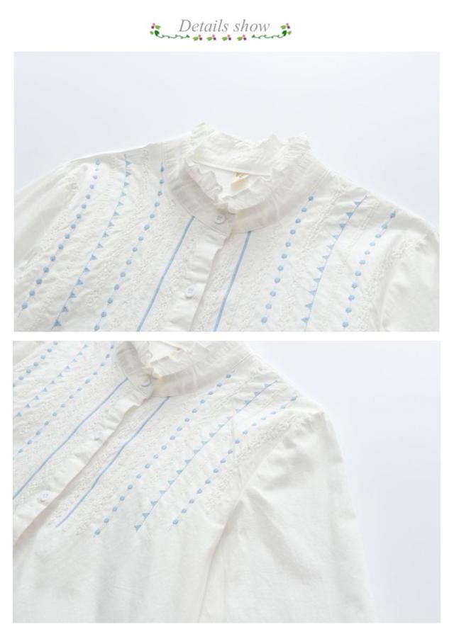 シャツ ブラウス レディース 白シャツ 送料無料 刺繍 トップス 長袖 春服 秋服 フリルシャツ コットン ナチュラル キレイめ 大人 女子