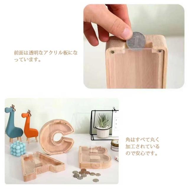 貯金箱 木製 小銭入れ アルファベット コインバンク 送料無料 装飾品 インテリア おしゃれ 木製 北欧 雑貨 置物 貯金 ボックス 置き物 見える クリア おしゃれ 子供 プレゼント 誕生日 クリスマス ギフト ナチュラル