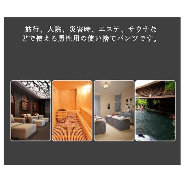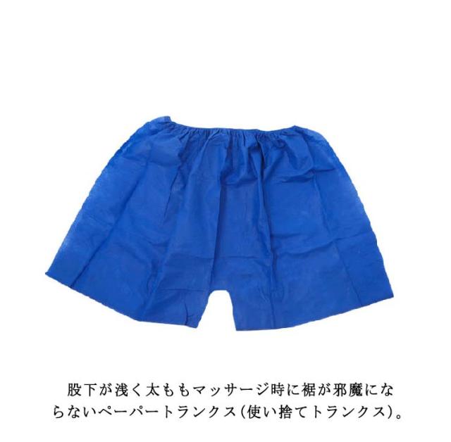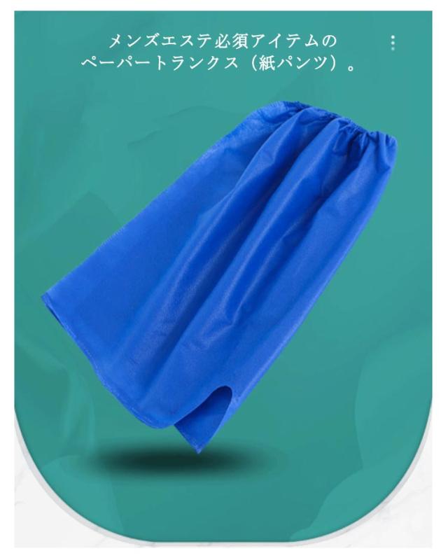| 【ペーパートランクス】【50枚入】【男性用】 携帯に便利!男性用の使い捨てペーパーパンツトランクスタイプ。 伸びるウエスト、ゆったり穿ける使い捨てペーパートランクス。 旅行、入院、災害時、エステ、サウナなどで使える男性用の使い捨てパンツです。 メンズエステ必須アイテムのペーパートランクス(紙パンツ)。 股下が浅く太ももマッサージ時に裾が邪魔にならないペーパートランクス(使い捨てトランクス)。 厚手で透けにくい生地の不織布なので水に強く、耐久性も抜群。 | |