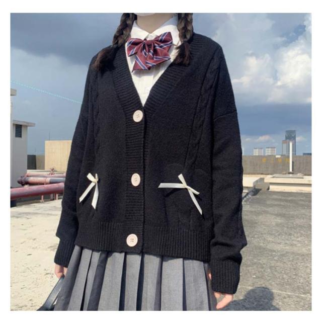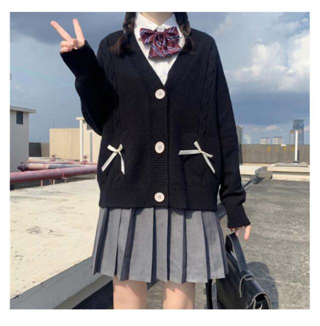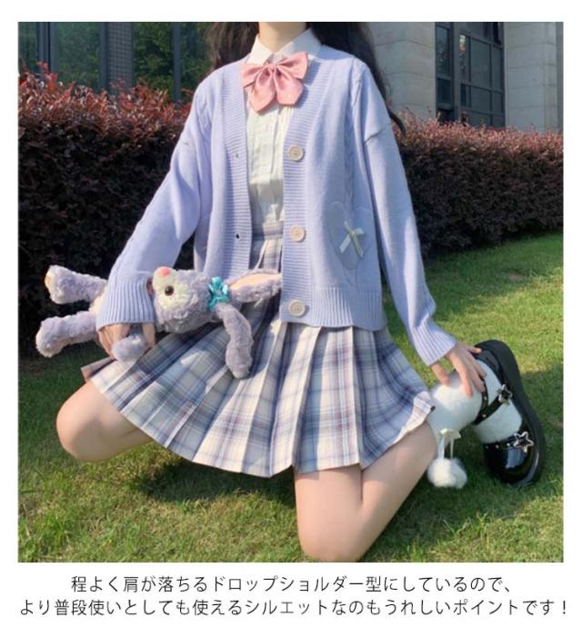 | シンプルなデザインで通学も普段使いもピッタリなニットカーディガンです。 程よく肩が落ちるドロップショルダー型にしているので、より普段使いとしても使えるシルエットなのもうれしいポイントです! ほど良い厚みのある素材なので秋〜春まで着れる万能アイテムとなっています。 良質な素材を使用し、心地良い温もりを与え、制服と組み合わせ実用性が満点です。 カラー豊富なのでいろんなスタイリングに使える優れもの!! | |