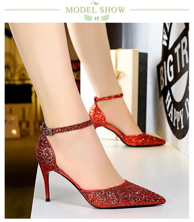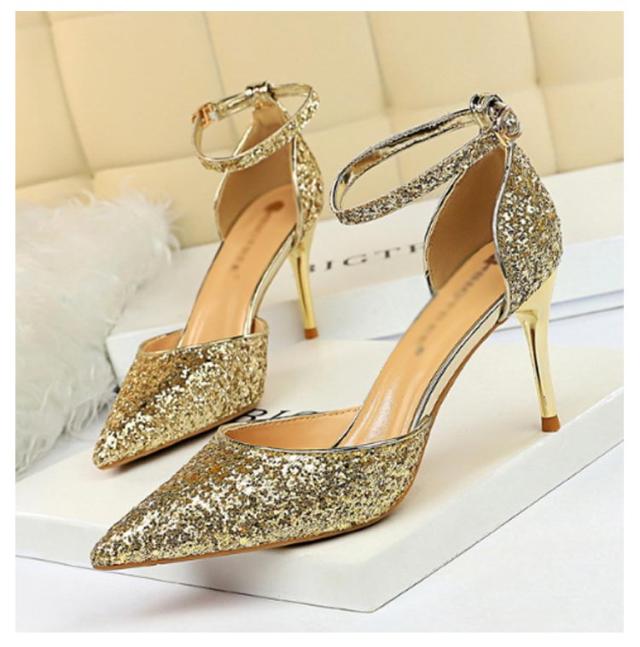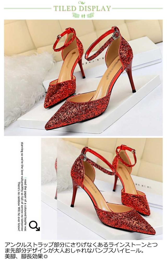 結婚式 パンプス 9cm 7.5センチ ピンヒール ハイヒール ストラップ ポインテッドトゥ キラキラ ラメ レディース 黒 シルバー ゴールド ブラック 二次会 パーティー 痛くない 歩きやすい 大きいサイズ 靴 シューズ かわいい