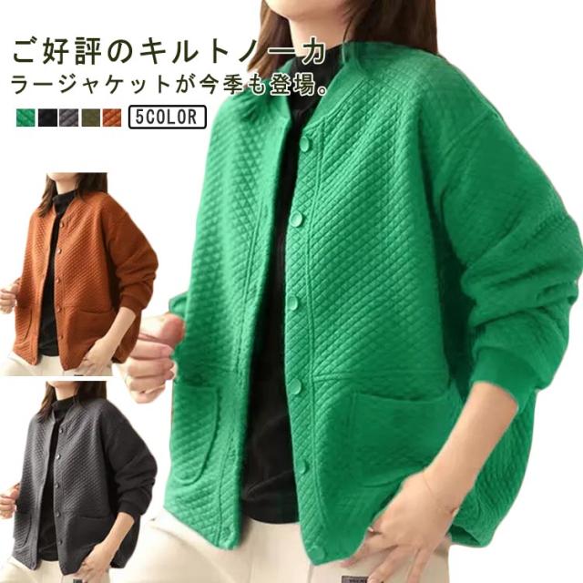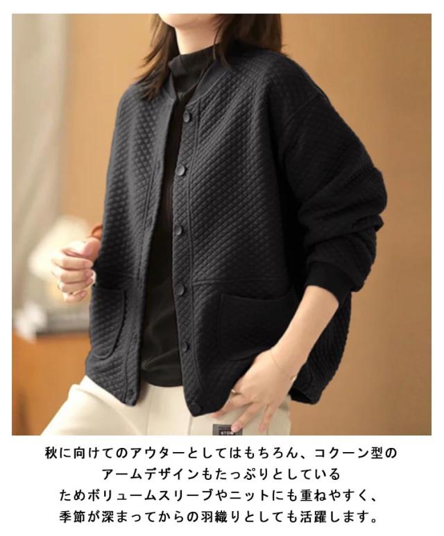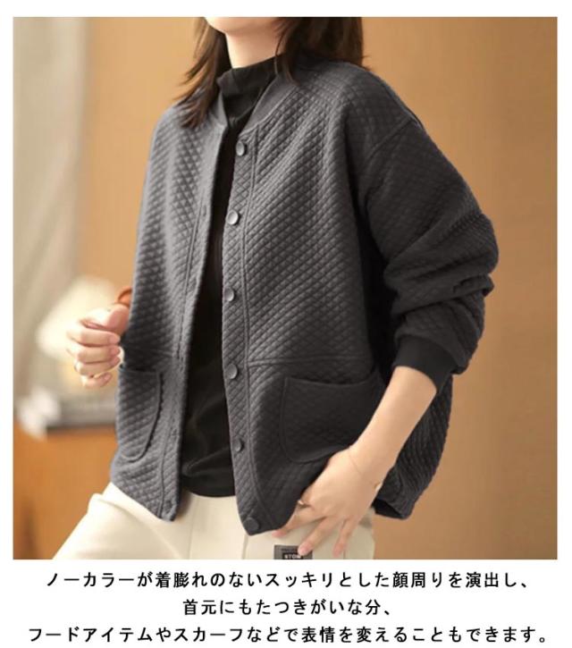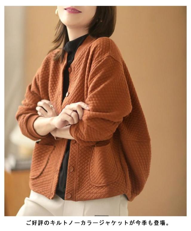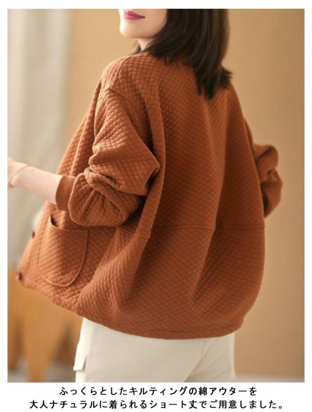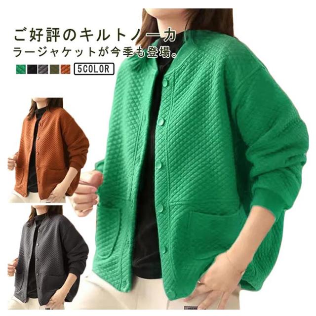 キルト ノーカラージャケット レディース キルトジャケット ショート丈 ノーカラー ジャケット キルティング 綿 アウター 秋 冬 羽織り 秋アウター あたっか 防寒 ゆったり 通勤 大人 カジュアル 大人可愛い 大きいサイズ おしゃれ 【送無】