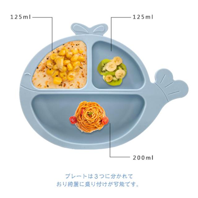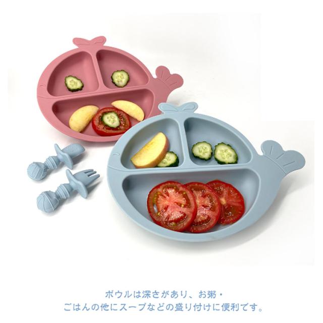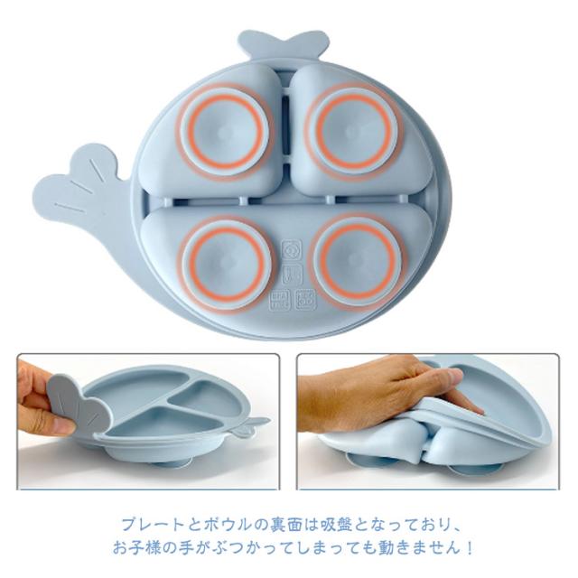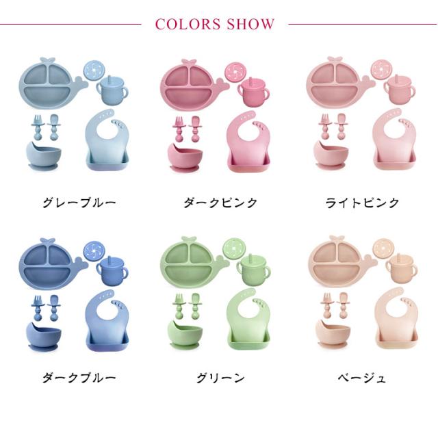 | 【お食事7点セット】【6color】 出産祝いに人気のかわいいベビー食器セット、贈り物にも最適。 食品グレードシリコン素材を採用して、耐熱・耐冷性抜群でレンジや食器洗い機が対応できてお手入れ簡単です。 プレートは3つに分かれており綺麗に盛り付けが可能です。 ボウルは深さがあり、お粥・ごはんの他にスープなどの盛り付けに便利です。 プレートとボウルの裏面は吸盤となっており、お子様の手がぶつかってしまっても動きません! よだれかけの首回りは4段階調整可能でお子様のサイズに合わせてボタンが調節可能です。 | |