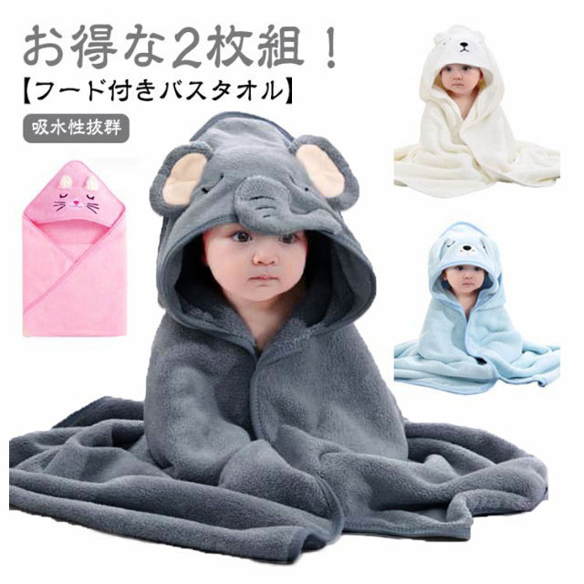 【2枚組】ベビー バスタオル フード付き ポンチョ 秋冬 赤ちゃん 男の子 女の子 タオル かわいい 新生児 お風呂 吸水速乾 バスポンチョ ギフト プレゼント 出産祝い お風呂上がり 着る バスタオル アニマル 動物 可愛い マイクロファイバー プール 水泳 クマ ベアー
