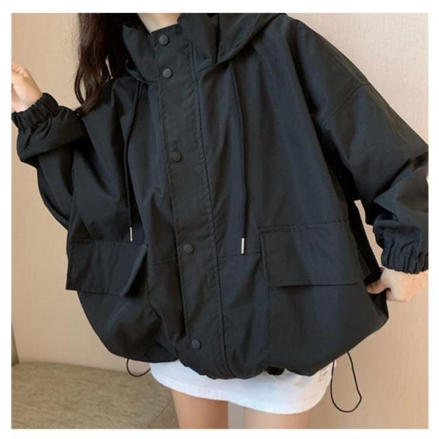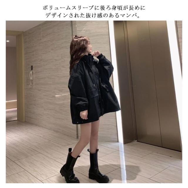 マウンテンパーカー レディース 撥水 ジャケット ライトアウター 春コート コート アウター 春 秋 アウター 薄手 ボリューム袖 パーカー フード付き オーバーサイズ ビッグシルエット ゆったり 撥水パーカー スプリングコート バルーン袖 黒