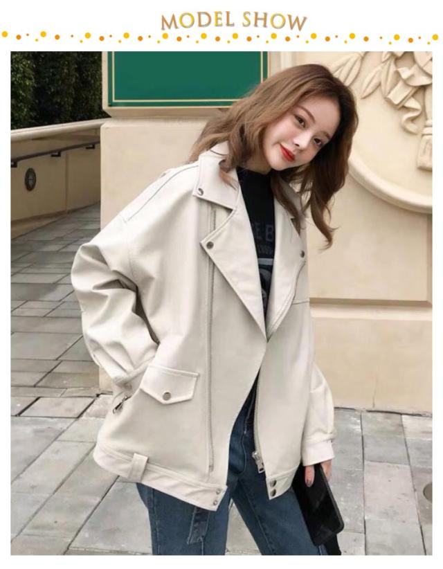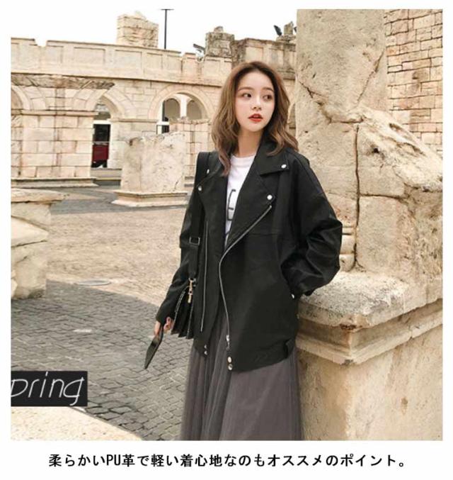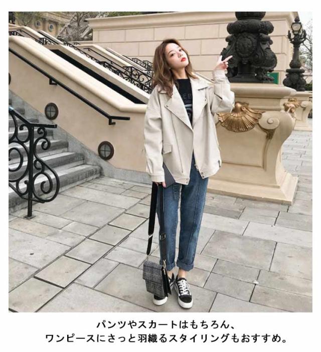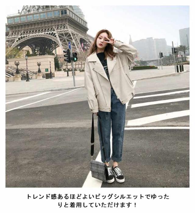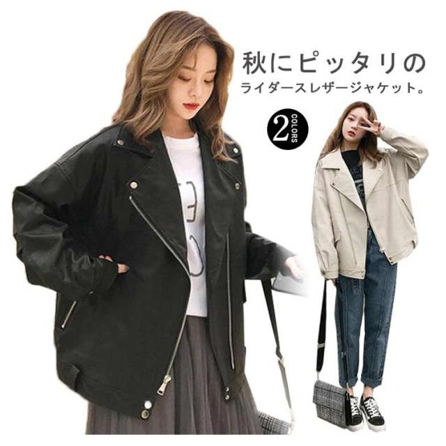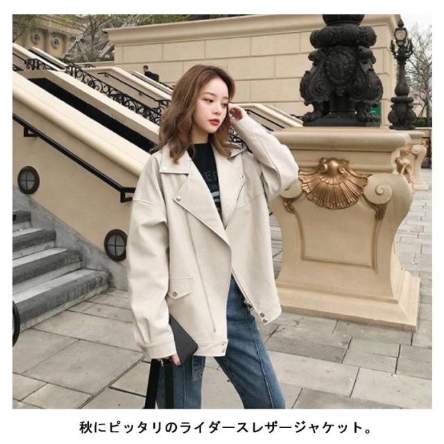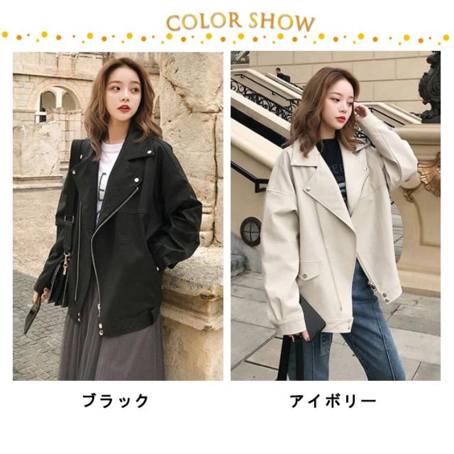 ライダースジャケット レディース レザージャケット ダブルライダース フェイクレザー バイクジャケット 大人 春 秋冬 アウター カジュアル オーバーサイズ ビッグシルエット ゆったり 大きいサイズ 革ジャン 皮ジャン ライトアウター 上着 上品 黒 アイボリー 送料無料