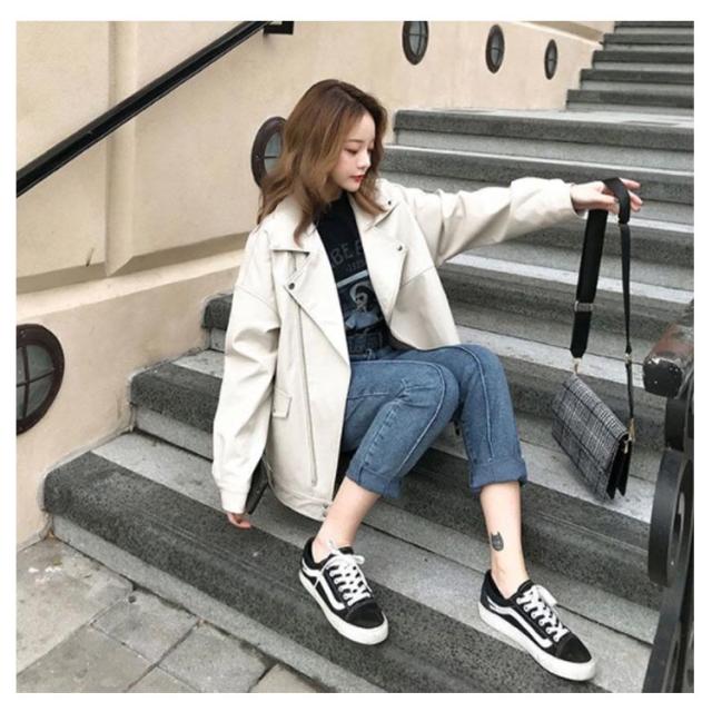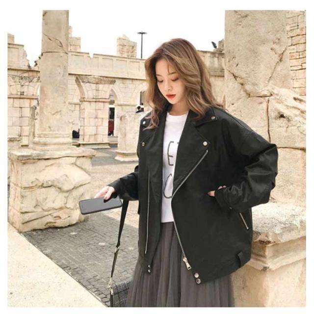 | 秋にピッタリのライダースレザージャケット。 トレンド感あるほどよいビッグシルエットでゆったりと着用していただけます! 柔らかいPU革で軽い着心地なのもオススメのポイント。 程よいオーバーシルエットで羽織りやすく、季節の変わり目のアウターとしてもぴったりなアイテム。 パンツやスカートはもちろん、ワンピースにさっと羽織るスタイリングもおすすめ。 カジュアルコーデはもちろんマニッシュコーデなどにも相性◎ | |