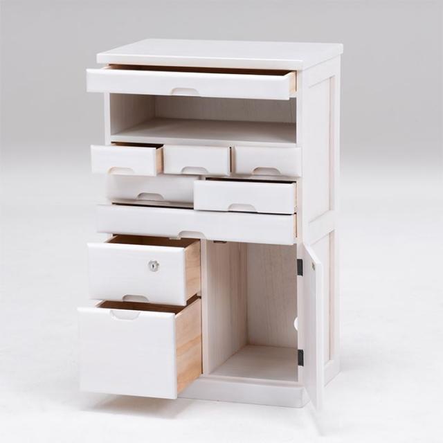 - ペンやメモ用紙、書類等大小のサイズがあるものを機能的に収納できるFAX台を探していたのですが、引き出しが多く綺麗に収まりました。完成品で届いたのですが床に置いた時点でがたつきがあり、底の隙間を調整しなければなりませんでした。