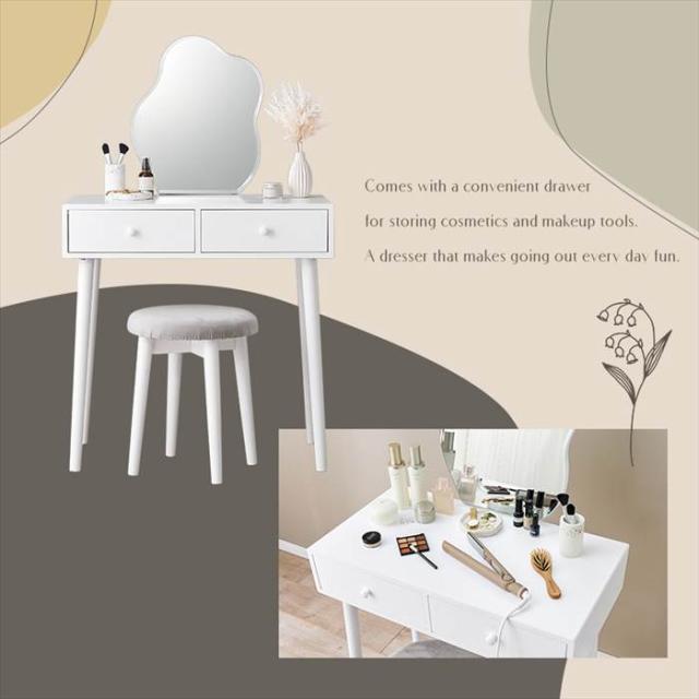 | サイズ | ドレッサー:(約)幅75×奥行48×高さ123.5cm スツール:(約)幅36×奥行36×高さ45cm |