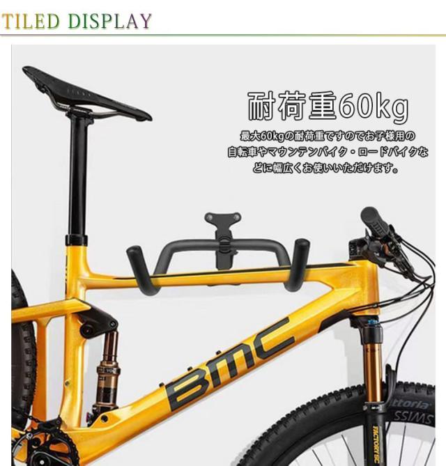 | 自転車を壁掛け収納・ディスプレイできる自転車用フックです。 玄関の壁に取り付けてスペースの有効活用していただいたり、室内に愛車をインテリアとして飾る事も可能です。 使用していない時は折りたたむ事が可能ですので場所をとりません。 長さの伸縮が可能なタイプになっておりますのでお手持ちの自転車などのサイズに合わせて調整することができる。 最大60kgの耐荷重ですのでお子様用の自転車やマウンテンバイク・ロードバイクなどに幅広くお使いいただけます。 スキー板・スノーボード・スケートボードをスタイリッシュにお部屋に飾る際にもぴったりです。 | |
