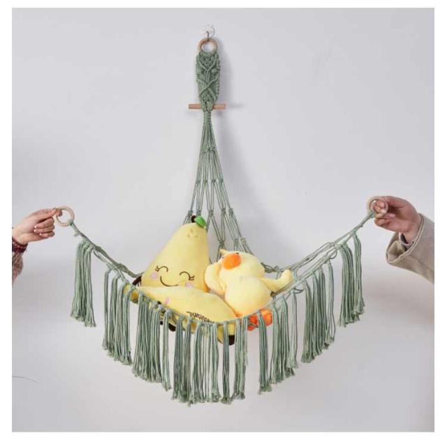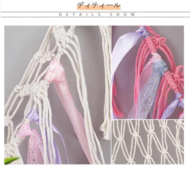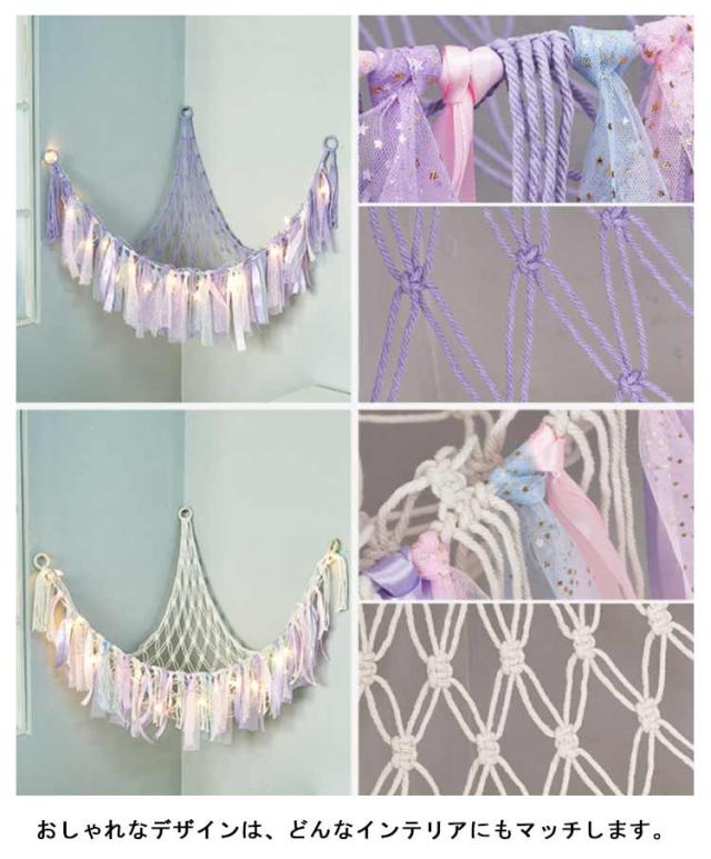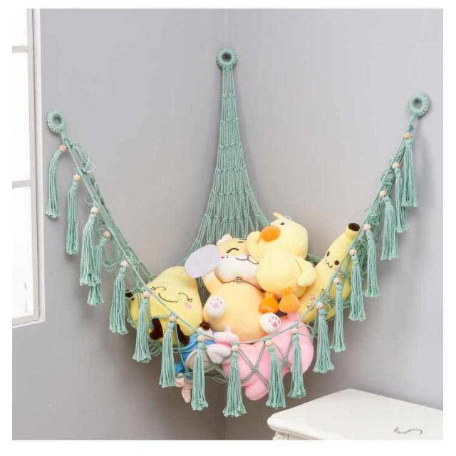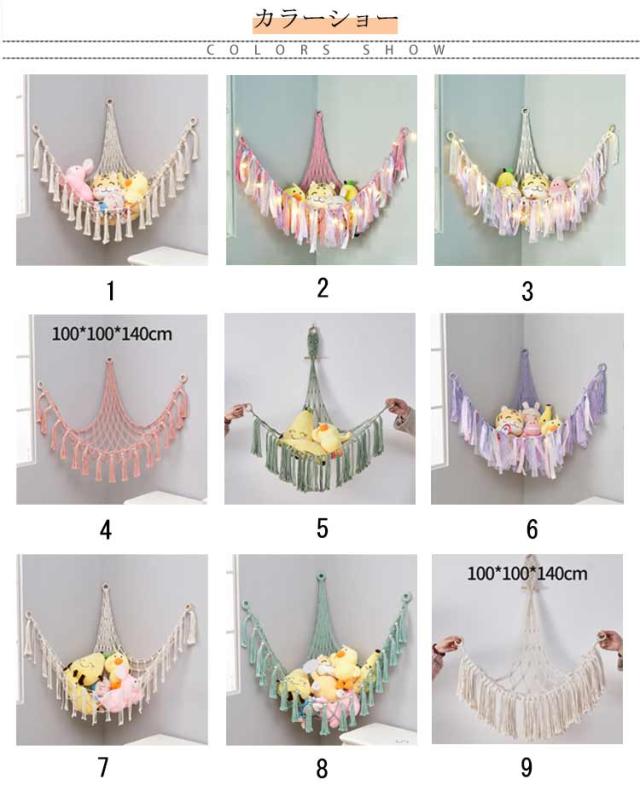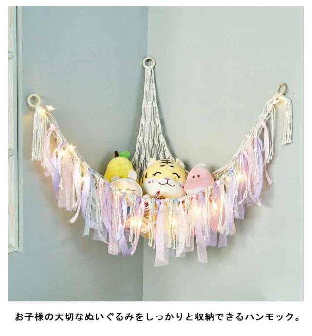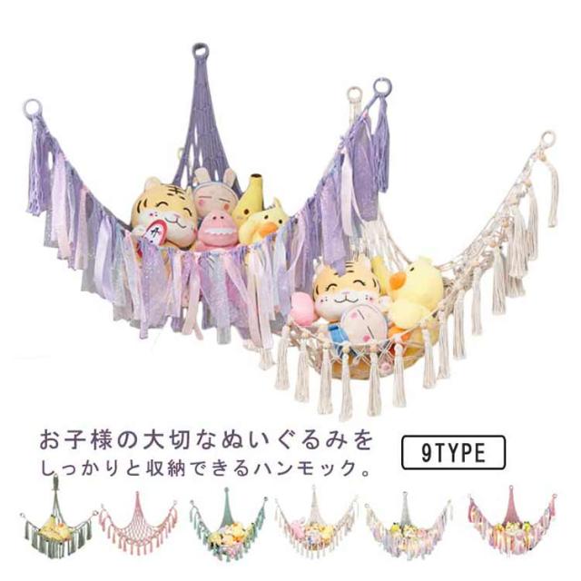 | お子様の大切なぬいぐるみをしっかりと収納できるハンモック。 三角形のデザインはコーナー位置を最大限に活用して、ぬいぐるみも一目で見つけられます。 おしゃれなデザインは、どんなインテリアにもマッチします。 タッセルをつけると、よりインテリア感の強い、おしゃれな印象に。 子供部屋だけでなく、リビングや寝室など、さまざまな場所に設置できます。 | |