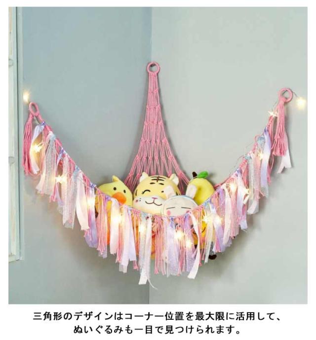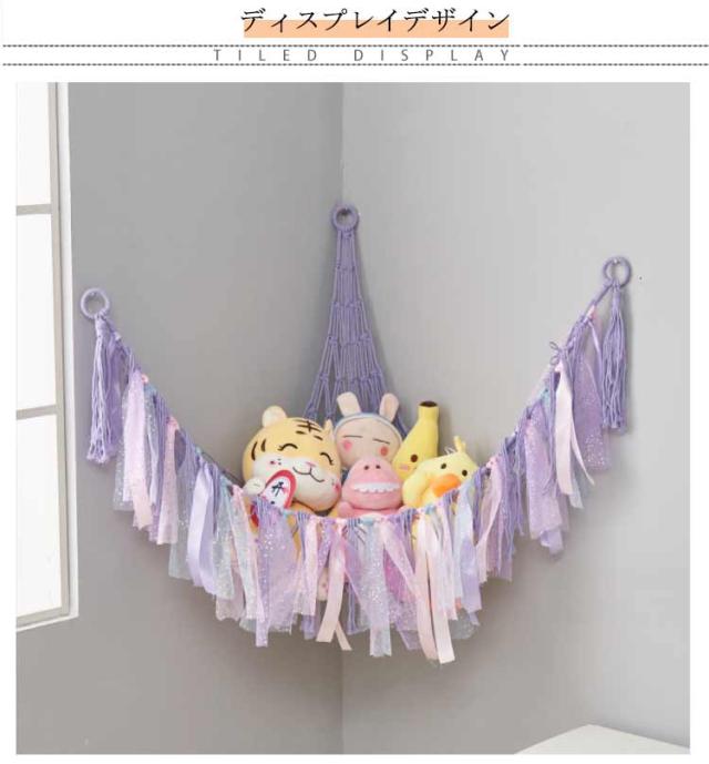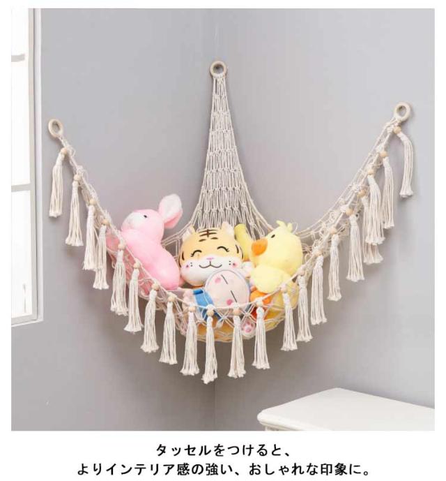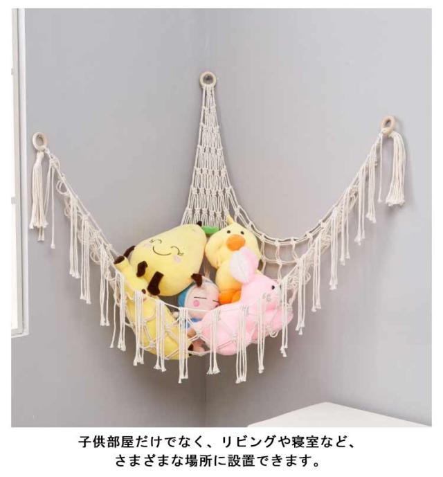 ぬいぐるみ ハンモック 収納ネット おもちゃ収納 綿ロープ 吊り下げ式 子供部屋 室内用 コーナーネット 片付け 隙間収納 見せる収納 お風呂用 多用途 インテリア 玩具 小物収納 送料無料