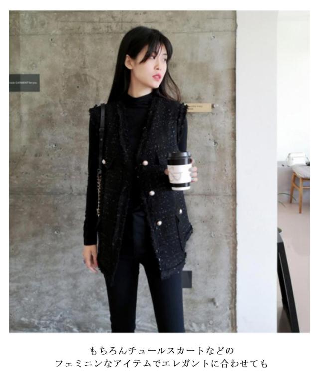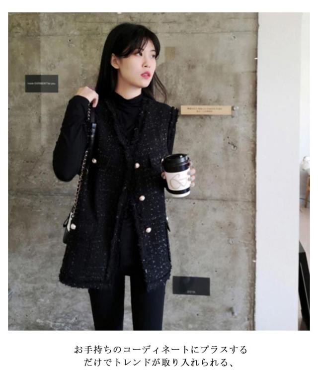 ツイード ベスト レディース 春 秋 アウター ツイード ベスト 前開き ジャケット ツイードジレ ジレベスト 秋冬 ベスト ジレ Vネック 送料無料 韓国ファッション 上品 エレガント 高見え カジュアル ママ コーデ フォーマル おしゃれ