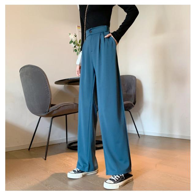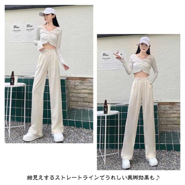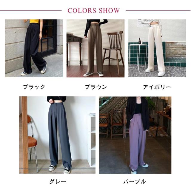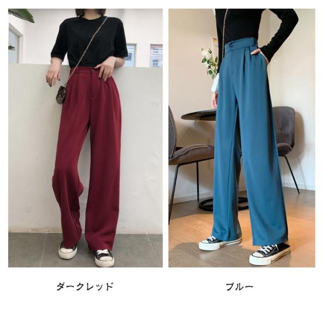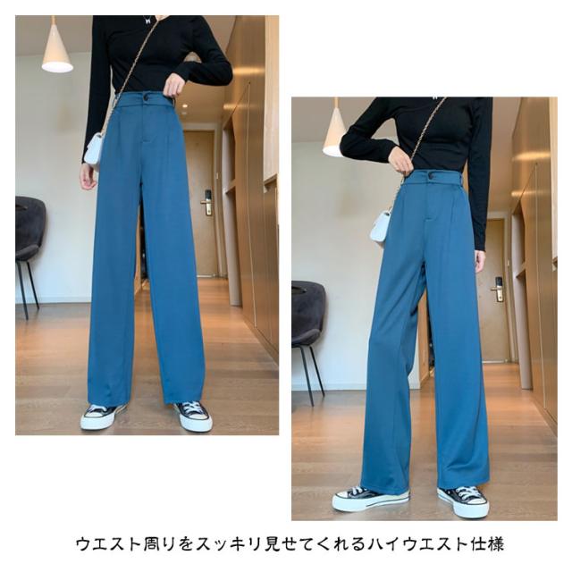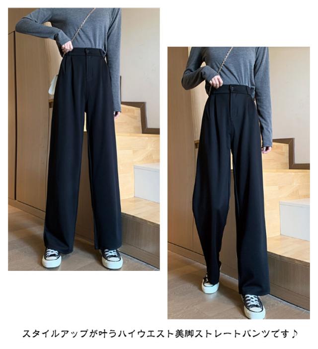 パンツ レディース ハイウエスト 美脚 脚長効果 ストレートパンツ ワイドパンツ ボトムス ワイド パンツ ズボン 長ズボン ロングパンツ ゆったり きれいめ ウエストゴム 韓国ファッション 春 秋冬 大人カジュアル スラックス 通勤 オフィスカジュアル