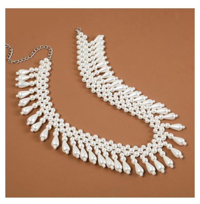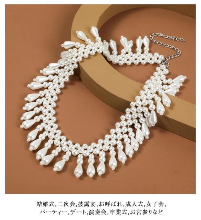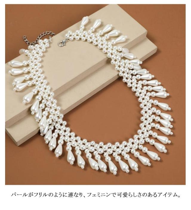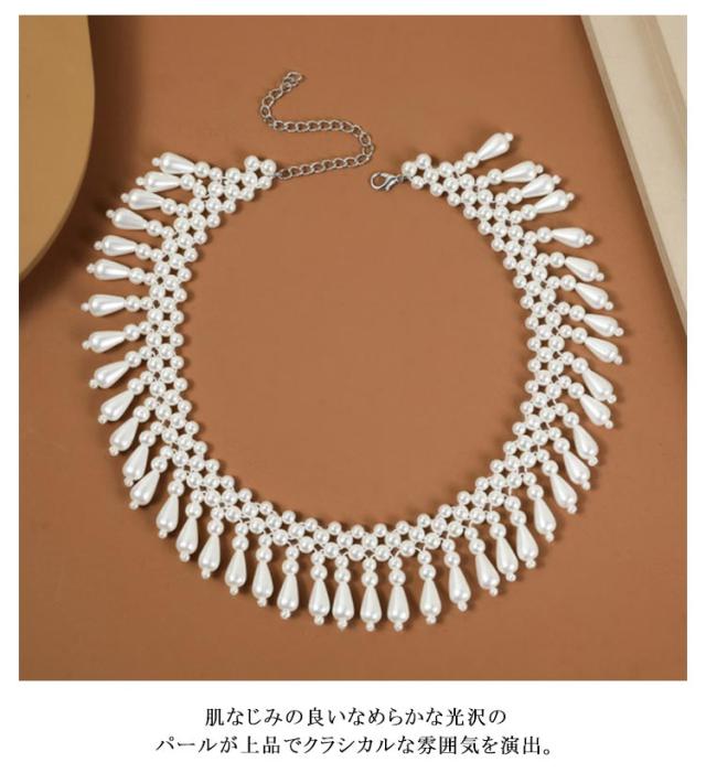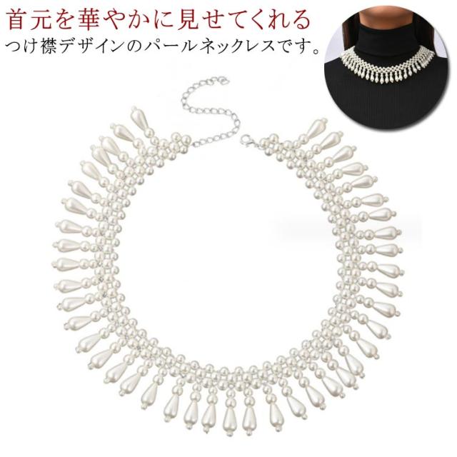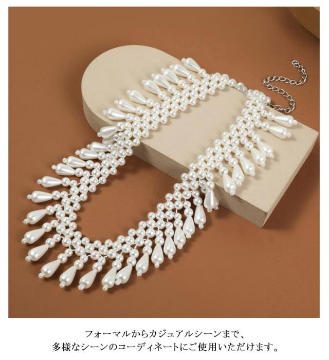 ネックレス パール つけ襟 フォーマル 結婚式 パールカラーネックレス パールックレス 大粒パール 小粒パール フリンジ つけえり 付け衿 ウェディング ドレス 用 パール付け襟 お出かけ お呼ばれ 上品 ガーリー エレガント アジャスター付き 長さ調節可能