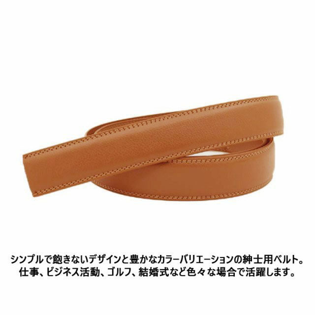 ベルト バックルなし ゴルフ メンズ 30mm 35mm 穴なし 帯のみ 交換用 替えベルト 無段階 オートロック ワンタッチ ズボン用 ゴルフ用 大きいサイズ 革 黒 茶色 オレンジ 130
