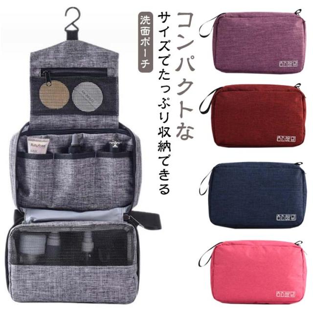 | 洗面ポーチ コンパクトなサイズでたっぷり収納できる 外側の素材のポーチも撥水効果があるので、水跳ねからなら大事な荷物を守ってくれます。 | |