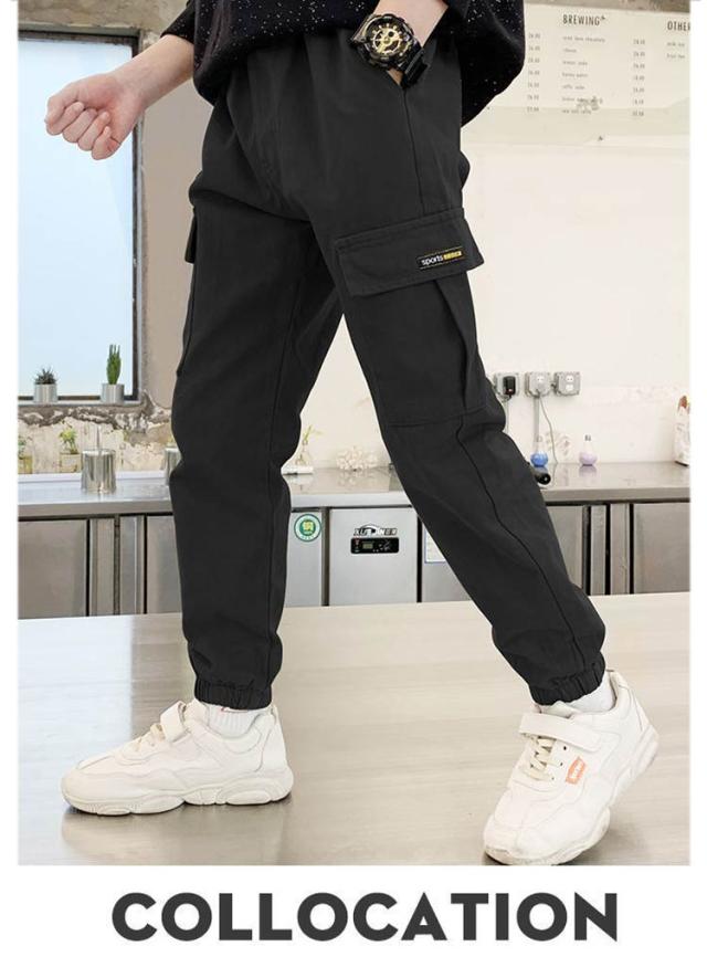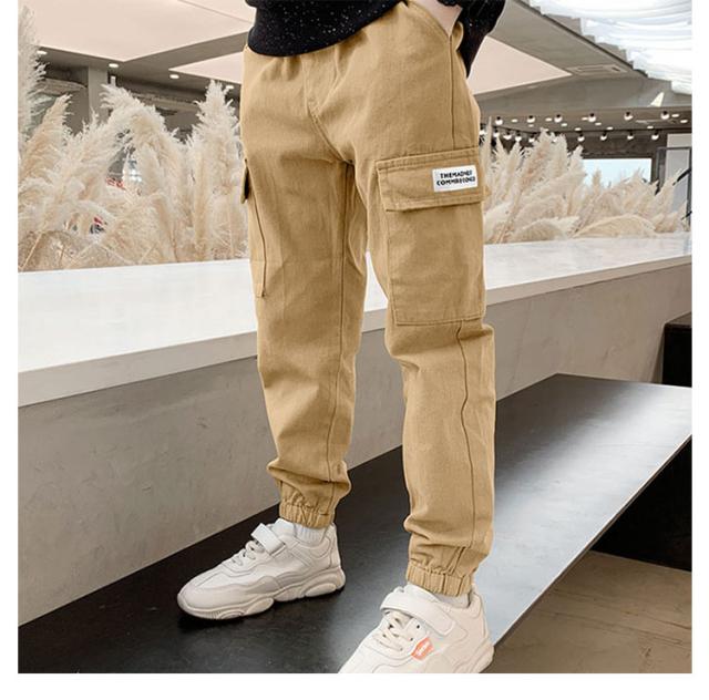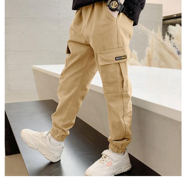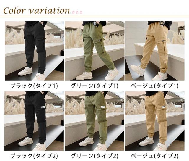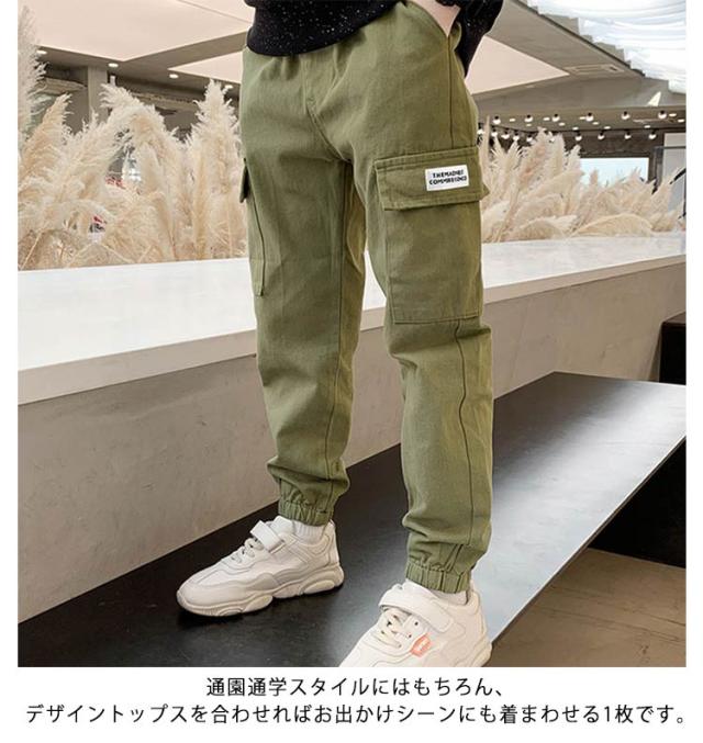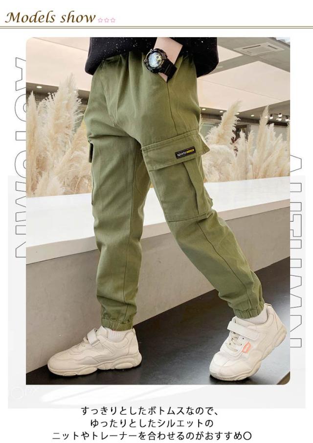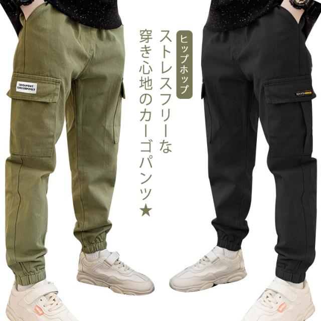カーゴパンツ キッズ ジュニア 長ズボン ボトムス 綿 コットン 子供 ロングパンツ 春 秋 冬 小学生 中学生 ミリタリーパンツ カジュアルパンツ こども 子ども 子供服 ウエストゴム ポケット ヒップホップ ダンス衣装 通学 120cm 130cm 140cm 150cm 160cm 送料無料