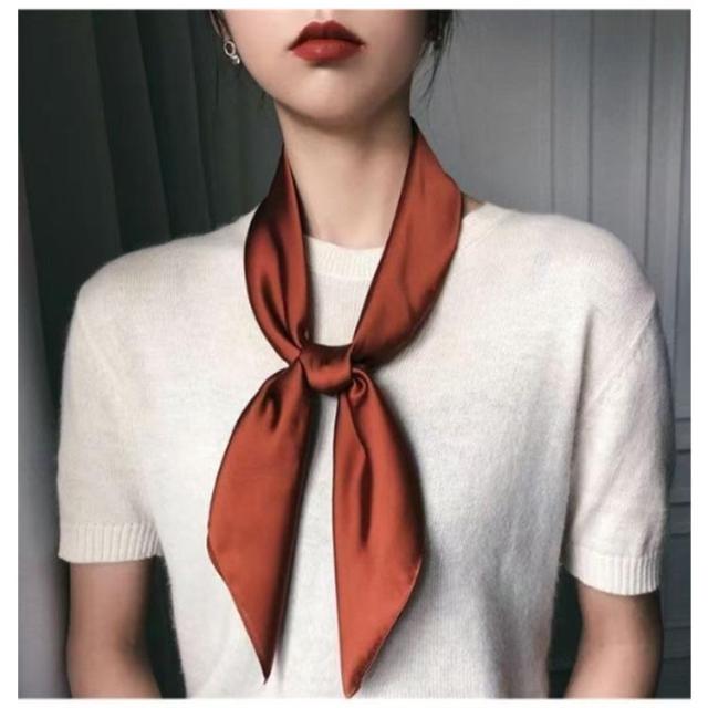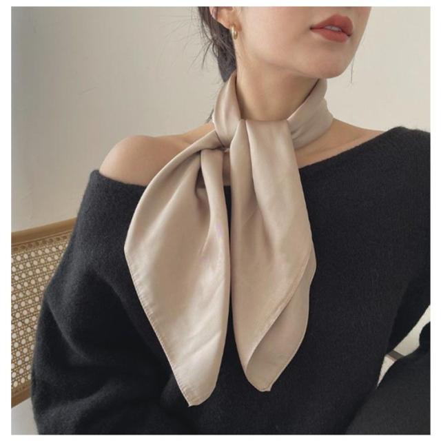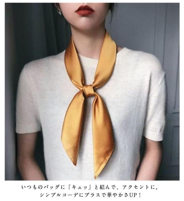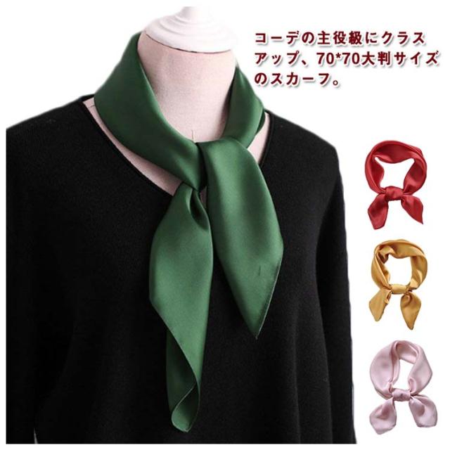 | コーデの主役級にクラスアップ、70*70大判サイズのスカーフ。 光沢感のある柔らかな生地で、高見えするアイテムです。 差し色感覚で普段のコーデに取り入れやすい大人の女性にぴったりなキレイ色を集めました。 いつものバッグに「キュッ」と結んで、アクセントに。シンプルコーデにプラスで華やかさUP! 様々なアレンジが楽しめ、ギフトにもおすすめです。 | |