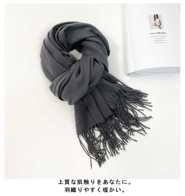 | 上質な肌触りをあなたに。 羽織りやすく暖かい。 防寒にもにも差し色にも使える 大判サイズでアレンジ自由。 いつものコーデにプラスするだけで洗練されたおしゃれ感。 アウター代わりに羽織って、メガネと合わせて上品な印象に。 また、首にマフラーのように巻けば顔まわりにボリュームが出て小顔効果に。 | |