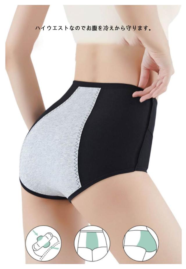 ショーツ ハイウエストショーツ レディース 3枚セット サニタリーショーツ 綿 コットン ハイウェスト 女性 下着 深め 深履き 生理用ショーツ 漏れない 温活 スタンダード レギュラー 冷え 対策 女性