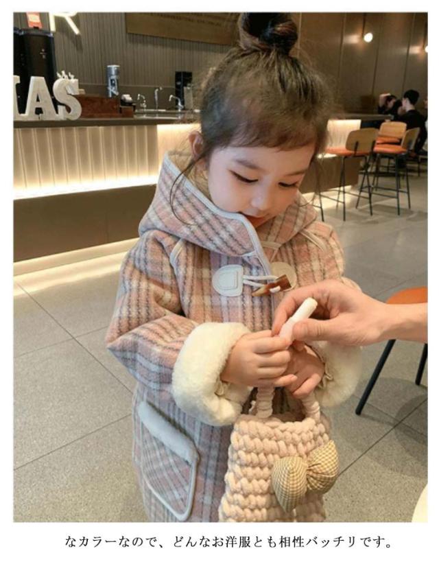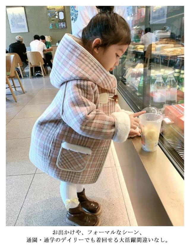 ダッフルコート キッズ ボアコート チェック柄 子供服 女の子 フード付きコート 裏ボア 暖かい 子供コート 防寒 ジャケット 秋 冬コート キッズコート 格子柄 キッズ服 アウター カジュアル 防寒 秋 冬 90/100/110/120/130/140