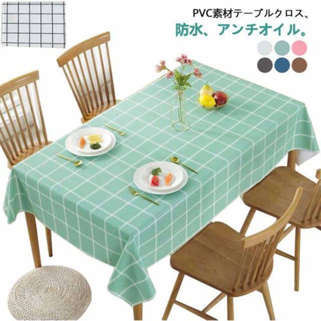 テーブルクロス テーブルカバー 食卓カバー テーブルマット PVC製 防水 防油 チェック 撥水 4サイズ 高級感 無地 デスクマット マルチカバー 正方形 長方形 汚れ防止 シンプル 装飾 飾り テーブルカバー インテリア用品 多用途 北欧