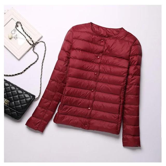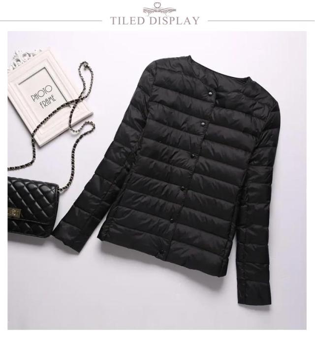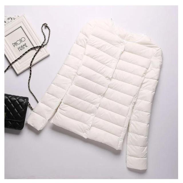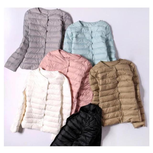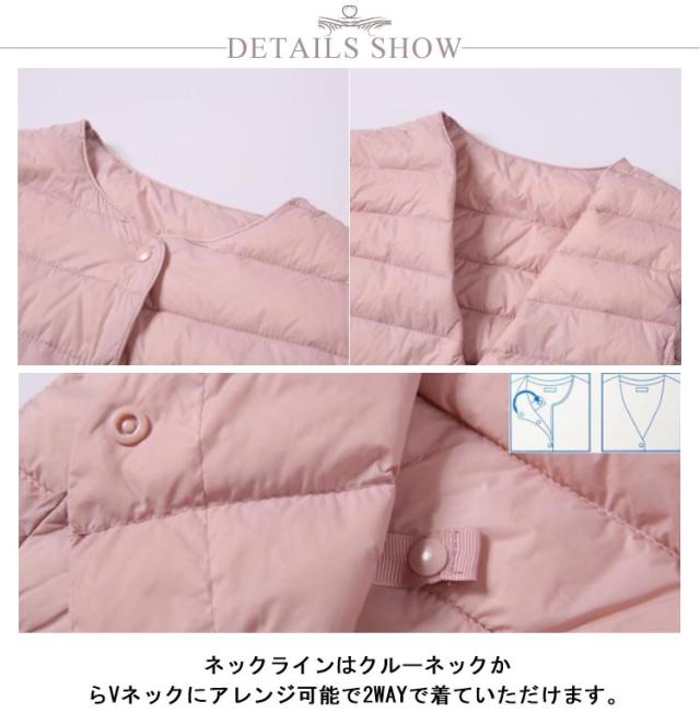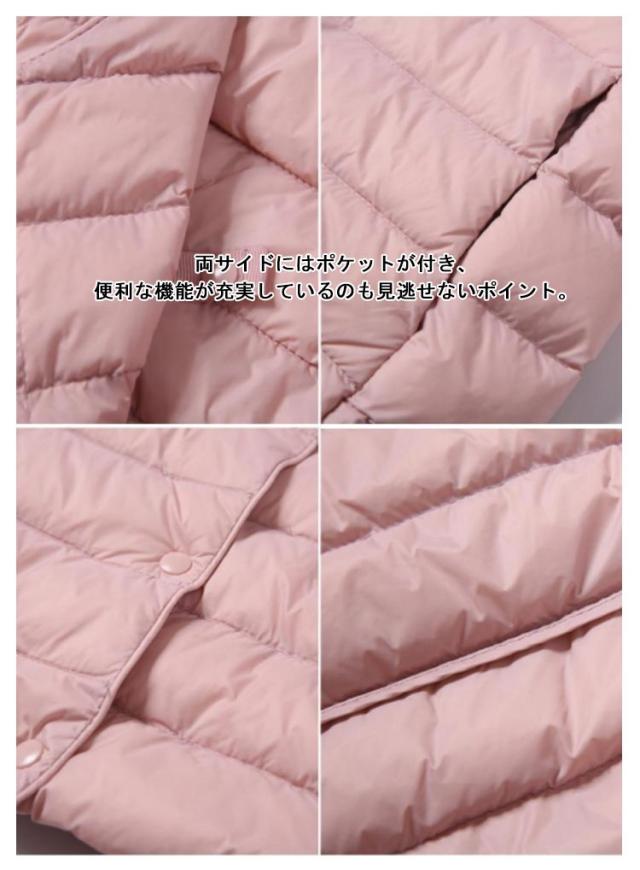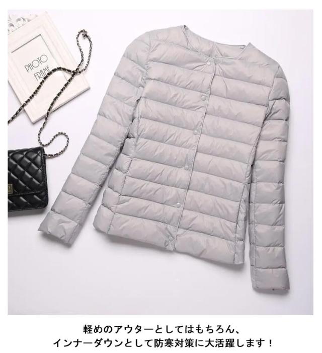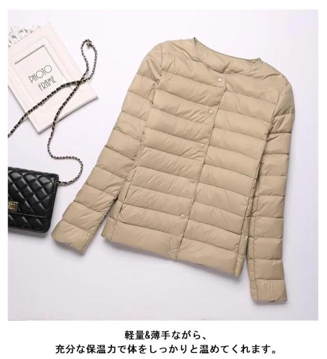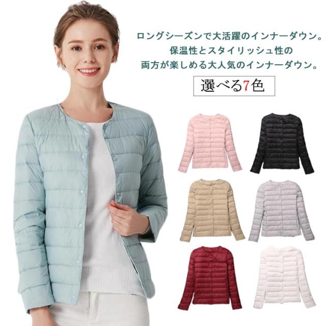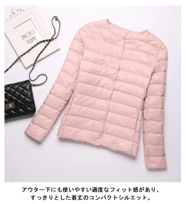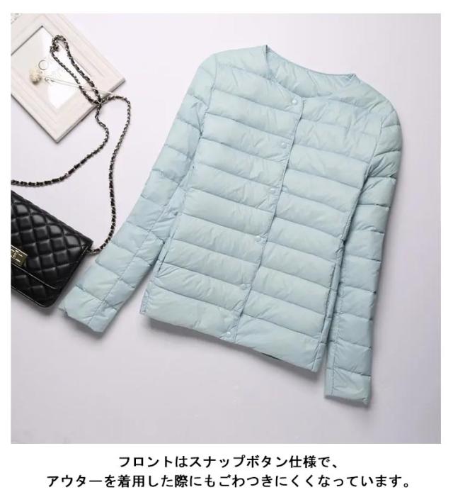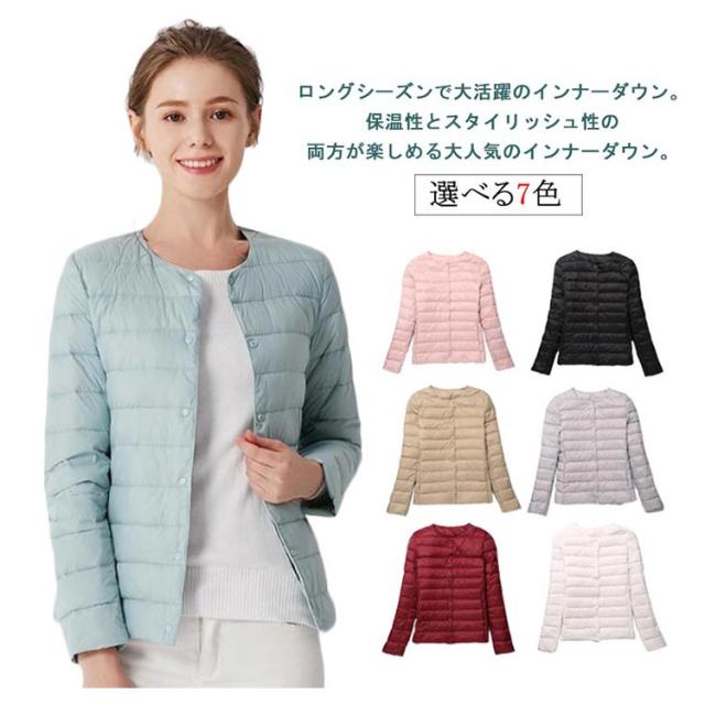 インナーダウン ライトダウン レディース ダウンジャケット 長袖 ショート 薄手 ノーカラー 大きいサイズ 無地 シンプル 秋冬 アウター コンパクト 軽い ダウンコート 2way ラウンドネック 軽量 重ね着 可愛い 防寒 あったか