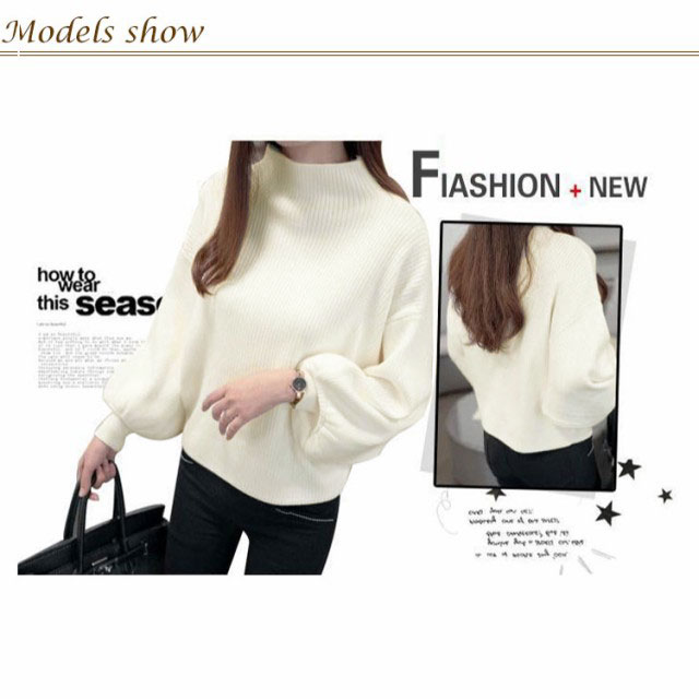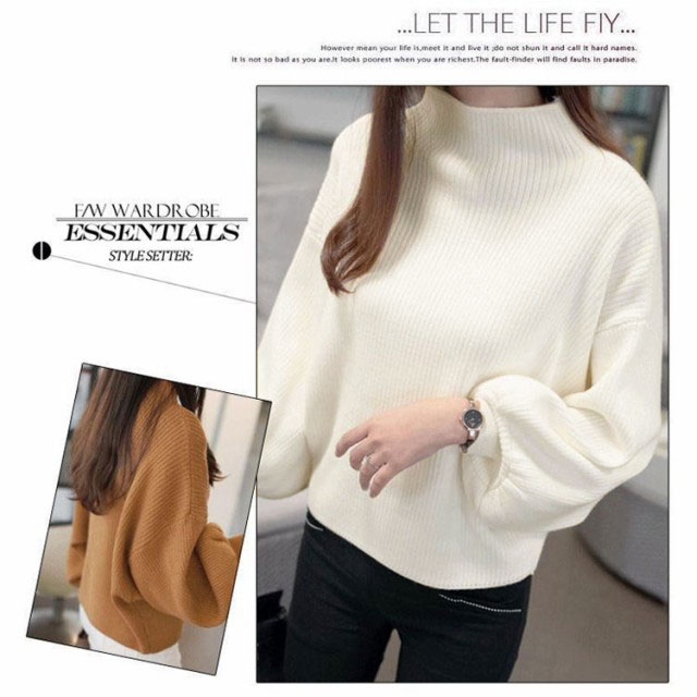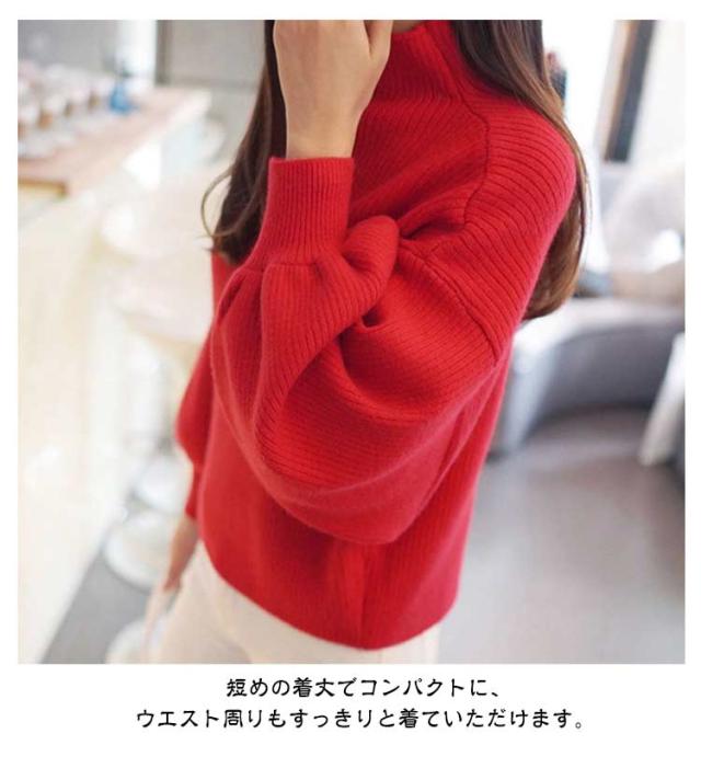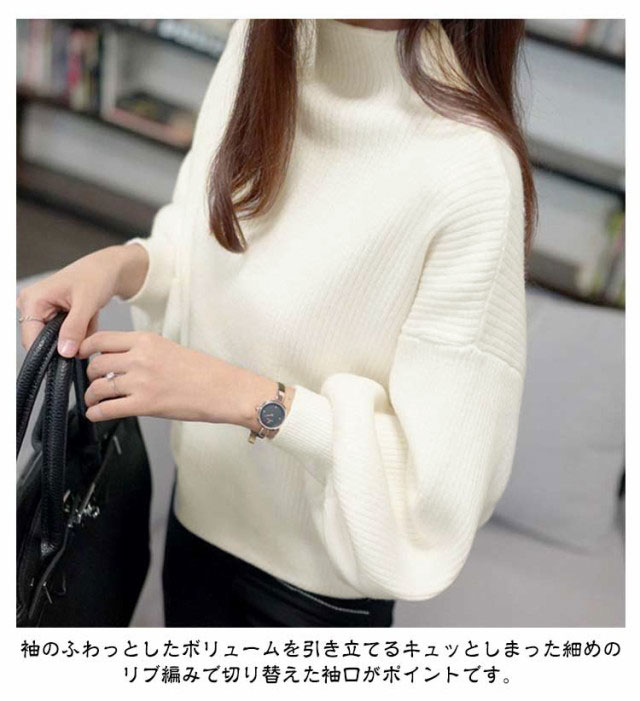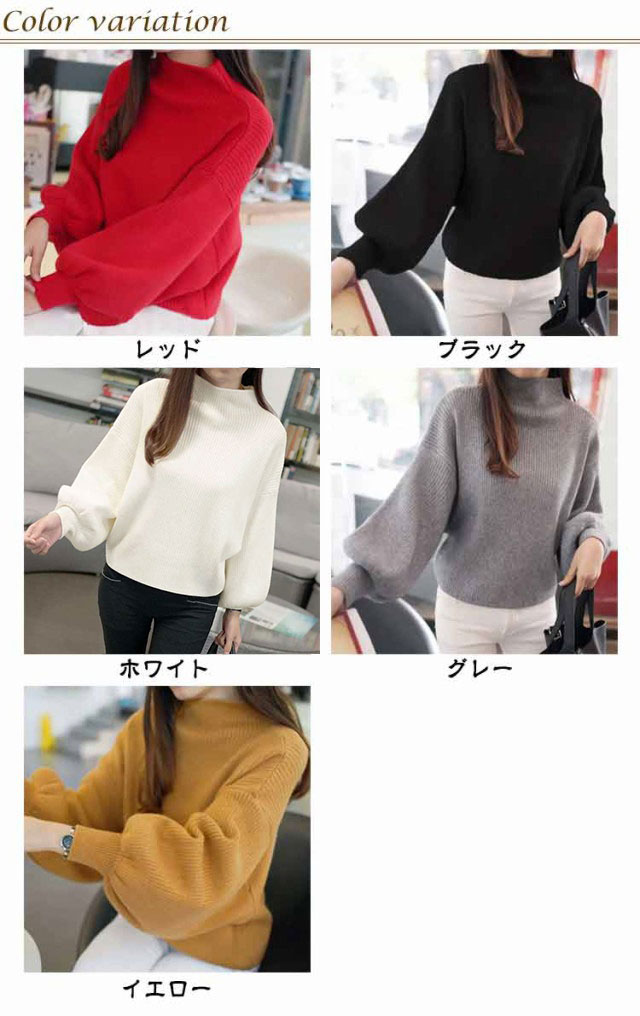 ニットセーター レディース トップス 長袖 タートルネック バルーンスリーブ バルーン袖 リブ ゆったり ハイネック 無地ニット 大きいサイズ ローゲージ シンプル 韓国ファッション きれいめ 20代 30代 40代 50代