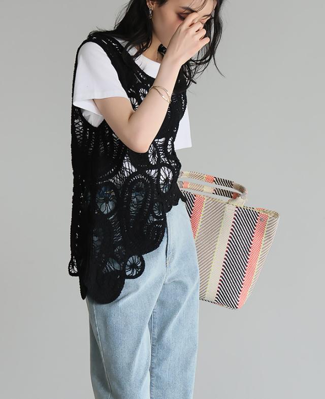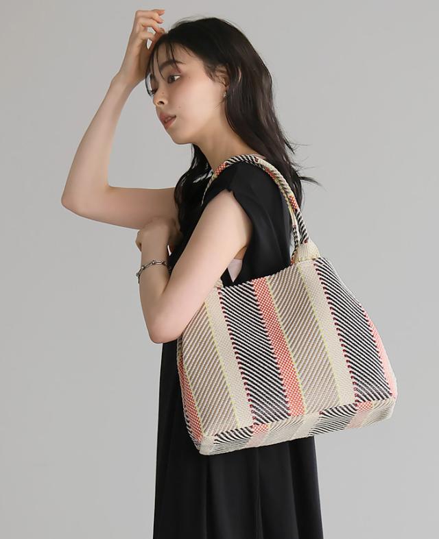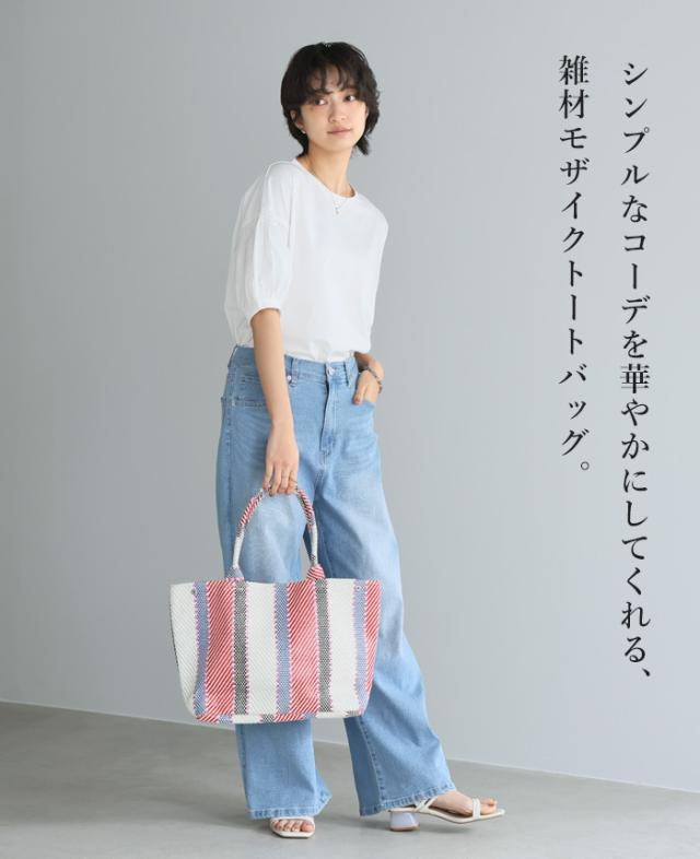 雑材モザイクトートバッグ 雑材 かごバッグ トートバッグ バッグ レディース【メール便不可】