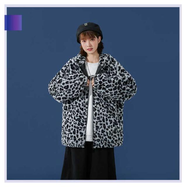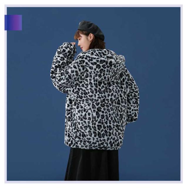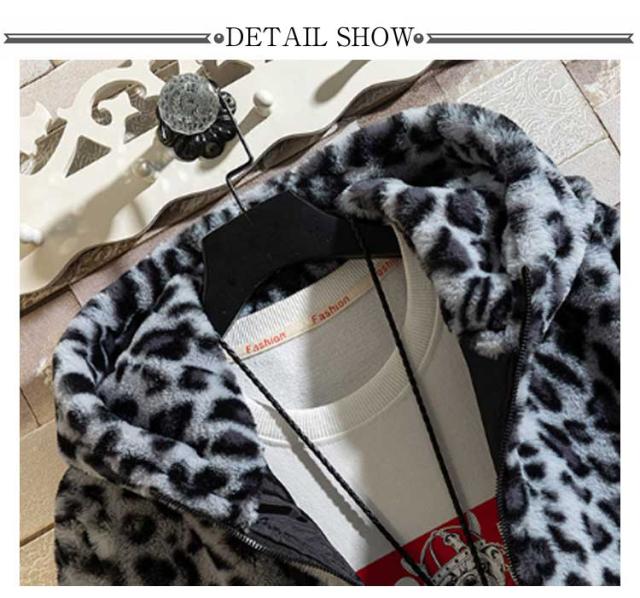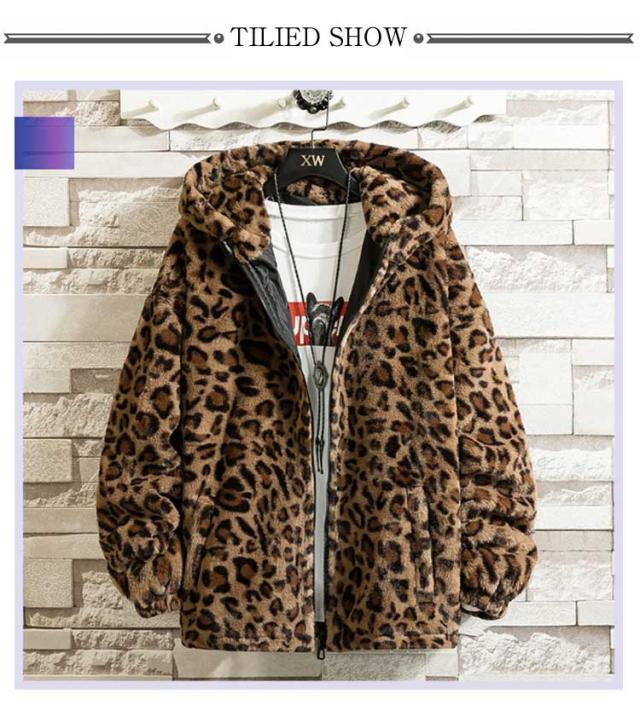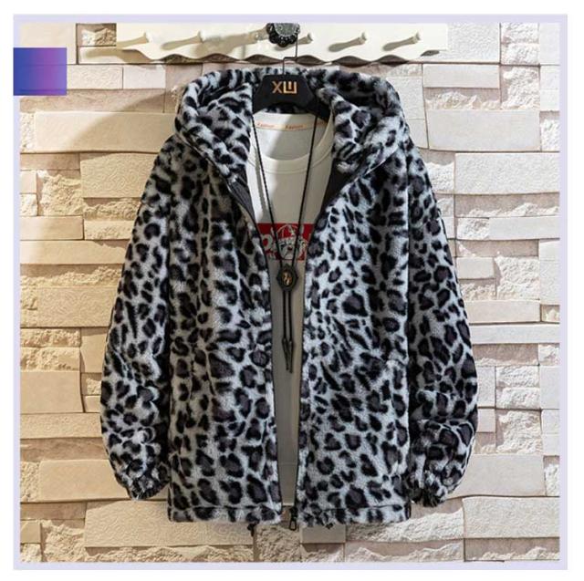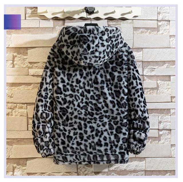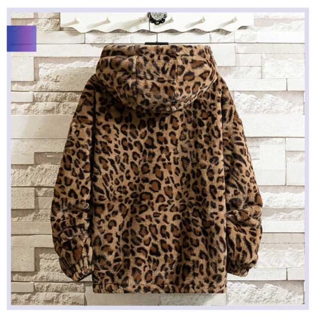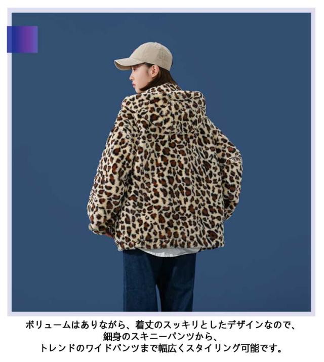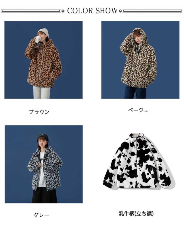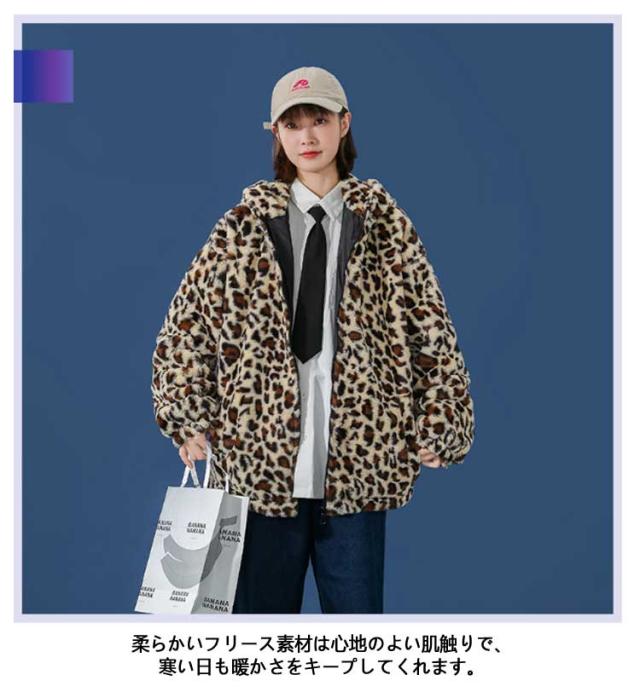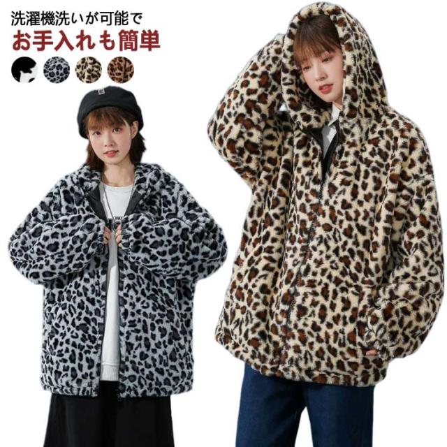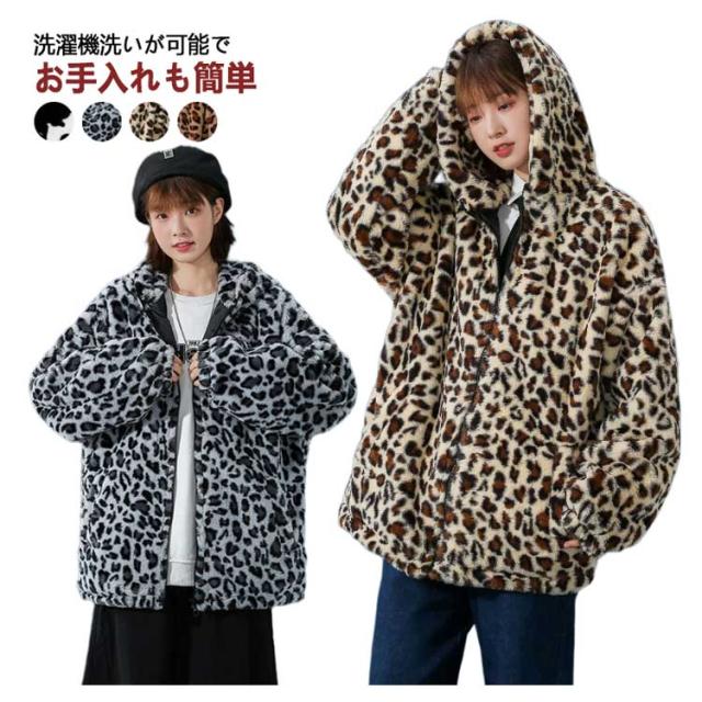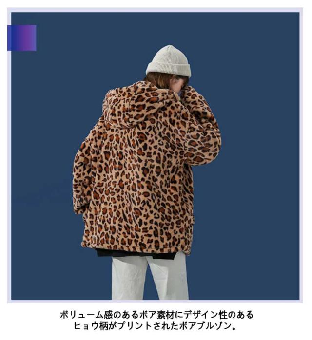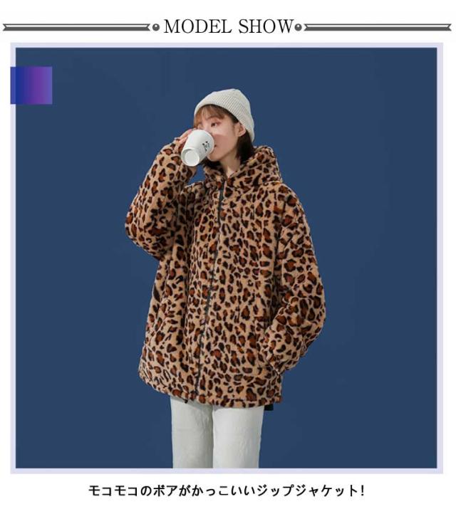 ボアジャケット モコモコ ボアコート ヒョウ柄 ジップアップ フード付き 立ち襟 アウター 防寒 あったか メンズ レディース 大きいサイズ ユニセックス ペアルック ストリート カジュアル アニマル柄 個性 上着 羽織 秋 冬