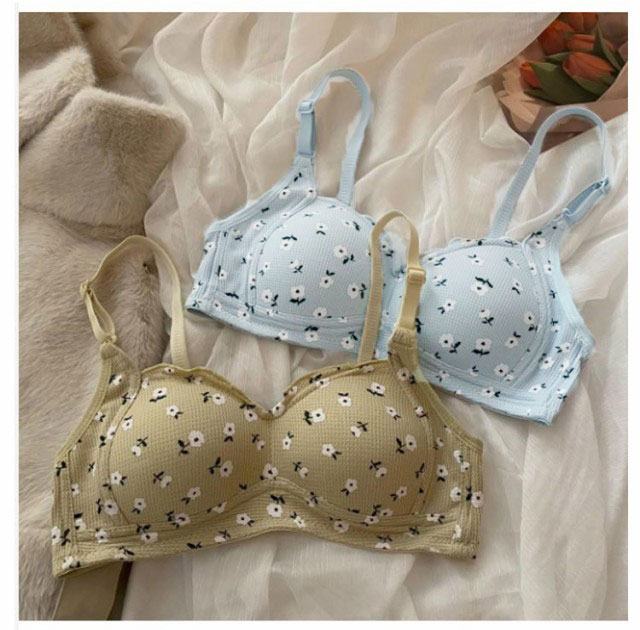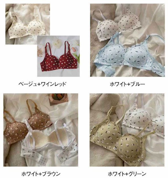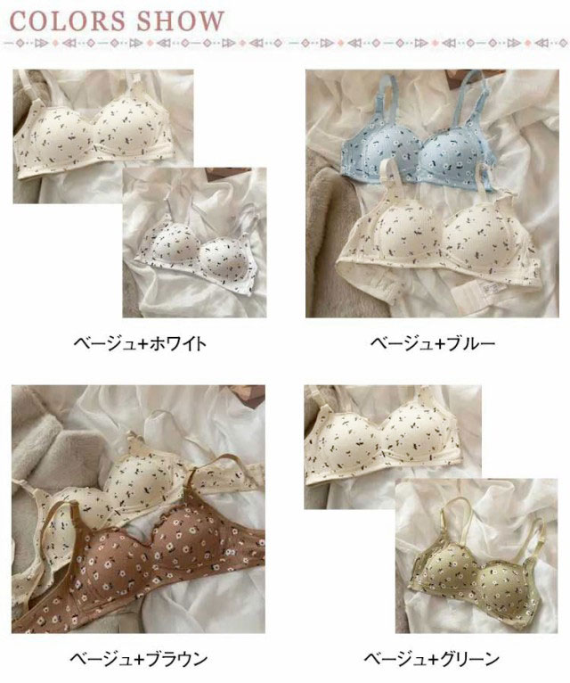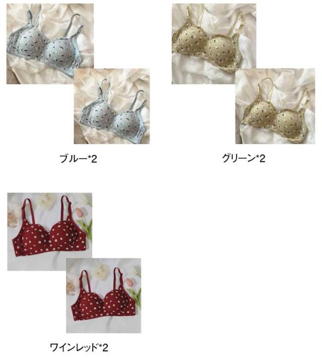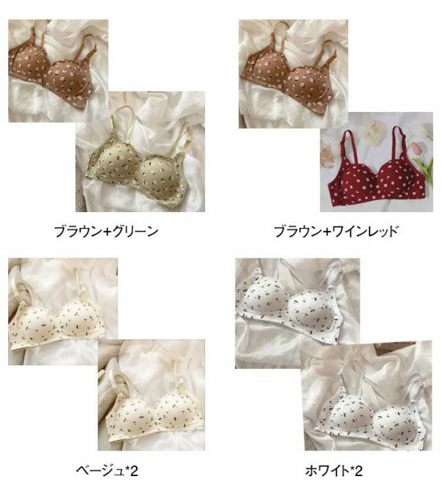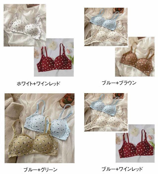 2枚セット ノンワイヤーブラ シンプル 小胸ブラ 高校生 可愛い 花柄 盛れる ブラジャー かわいい 中学生 ファーストブラ 補正 ナイトブラ 小さいサイズ Aカップ 10代 20代