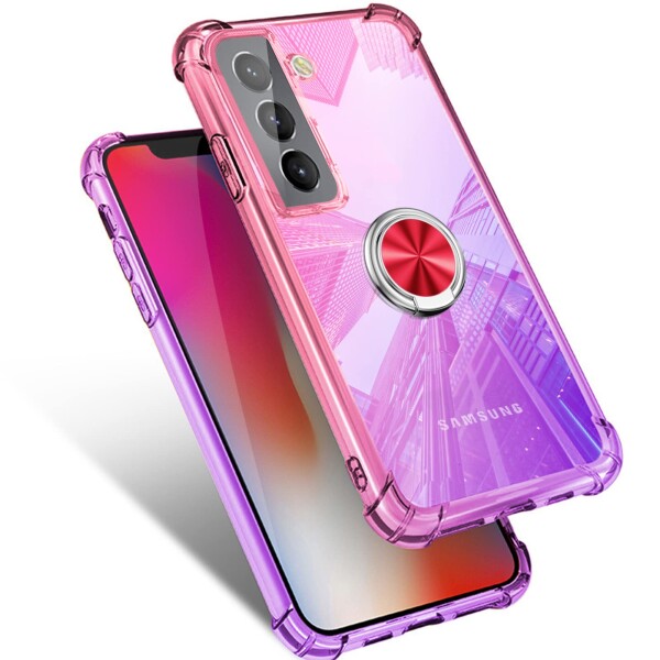 Galaxy S21 ケース リング付き クリア SCG09 SC-51B耐衝撃 薄型 グラデーション 透明 TPUバンパー 車載ホルダー対応 スタンド機能 薄型 軽量 取り出し易い 全面保護 カバー 光学メッキ加工 おし