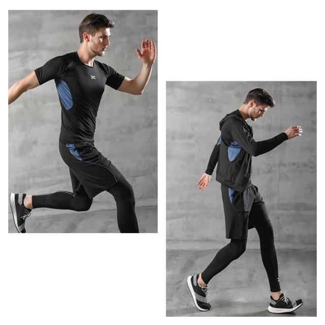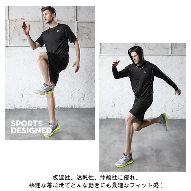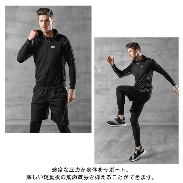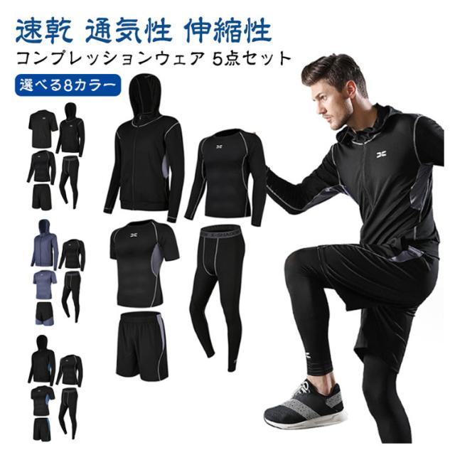 送料無料 スポーツウェア 5点セット コンプレッションウェア メンズスポーツウェア ジム ランニングウェア トレーニングウェア 吸汗 速乾 通気性 伸縮性 メンズ 上下 長袖 半袖 パーカー ショートパンツ レギンス おしゃれ 選べる8カラー