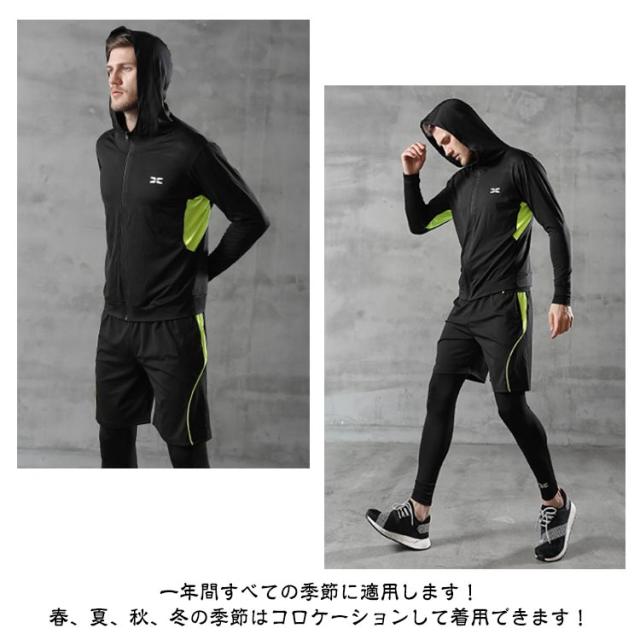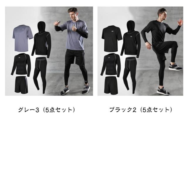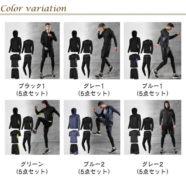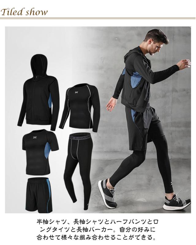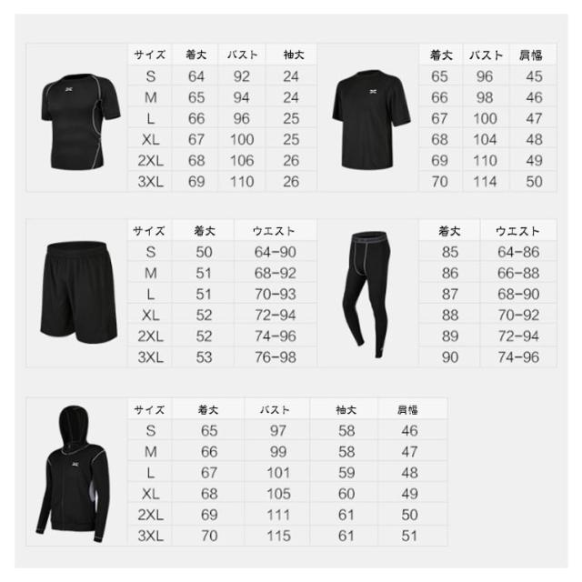 | コンプレッションウェア 5点セット。半袖シャツ、長袖シャツとハーフパンツとロングタイツと長袖パーカー。自分の好みに合わせて様々な組み合わせることができる。 吸湿性、速乾性、伸縮性に優れ、快適な着心地でどんな動きにも最適なフィット感!適度な圧力が身体をサポート、激しい運動後の筋肉疲労を抑えることができます。 フィットネス、ダンス、テニス、マラソン、ランニング等スポーツに最適! 一年間すべての季節に適用します!春、夏、秋、冬の季節はコロケーションして着用できます! | |