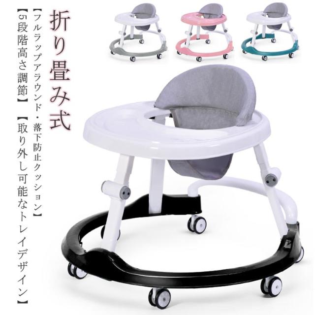 乗り物 高さ調整可能 手押し車 ベビーウォーカー 歩行器 歩行訓練 ベビー 赤ちゃん 丸型 折り畳み式 食事用プレート付き 歩行器 歩く練習 静音 車 室外 室内 歩行器 テーブル付き 丸型歩行器 綿麻シート クッションシート 洗える