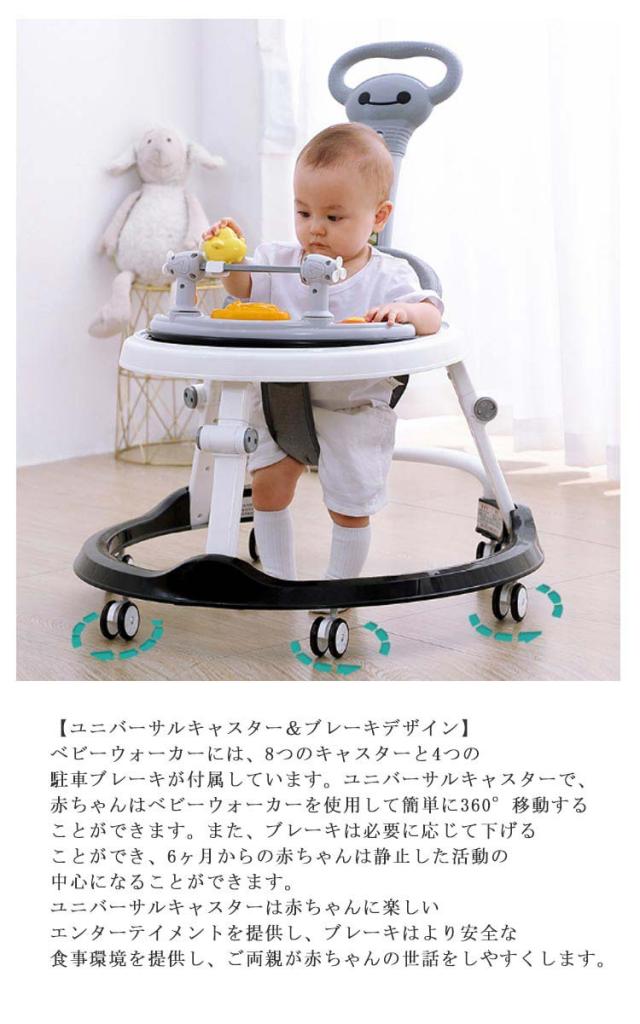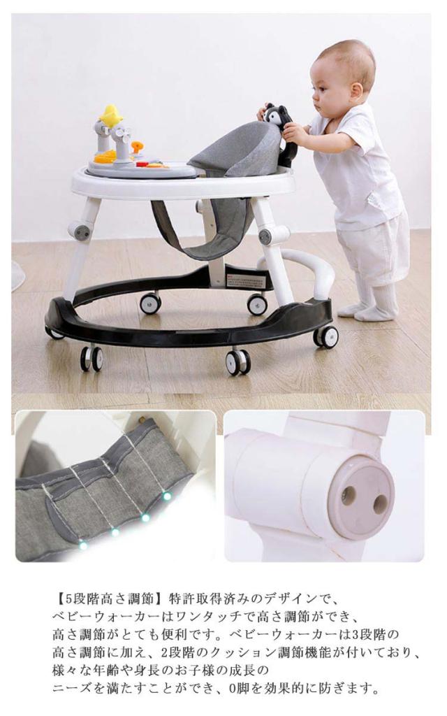 | 【5段階高さ調節】特許取得済みのデザインで、ベビーウォーカーはワンタッチで高さ調節ができ、高さ調節がとても便利です。ベビーウォーカーは3段階の高さ調節に加え、2段階のクッション調節機能が付いており、様々な年齢や身長のお子様の成長のニーズを満たすことができ、O脚を効果的に防ぎます。 【取り外し可能なトレイデザイン】赤ちゃん用には取り外し可能なトレイが付いています。BPA、PVC、フタル酸エステルを使用せず、赤ちゃんの食事に直接使用することができます。赤ちゃん用ベビーウォーカーのトレイは、汚れを拭き取りやすいだけでなく、安全で場所を取らず、毎日の使用や保管が簡単です。 【フルラップアラウンド・落下防止クッション】6ヶ月からの赤ちゃんはフルラップアラウンドクッションでアップグレードされ、耐荷重が強く、破損しにくいです。両サイドの転倒防止ストリップのデザインは、穴のサイズを小さくし、効果的に転倒を防止します。このベビーウォーカーは、赤ちゃんが自由に安全に移動できるよう、完全な保護を提供します。 【ユニバーサルキャスター&ブレーキデザイン】ベビーウォーカーには、8つのキャスターと4つの駐車ブレーキが付属しています。ユニバーサルキャスターで、赤ちゃんはベビーウォーカーを使用して簡単に360°移動することができます。また、ブレーキは必要に応じて下げることができ、6ヶ月からの赤ちゃんは静止した活動の中心になることができます。ユニバーサルキャスターは赤ちゃんに楽しいエンターテイメントを提供し、ブレーキはより安全な食事環境を提供し、ご両親が赤ちゃんの世話をしやすくします。 | |