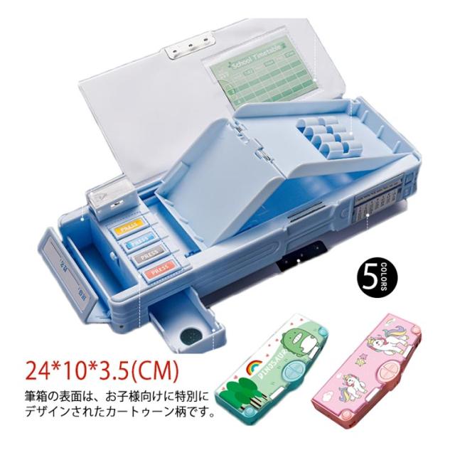 | 筆箱の表面は、お子様向けに特別にデザインされたカートゥーン柄です。漫画の柄は子供たちに好まれており、子供たちに最適な選択です。 この筆箱は、テープ、消しゴム、小型安全ハサミ、鉛筆削り、定規が付属しています。 ゴムボックス、鉛筆削りボックス、テープボックス、ハサミボックス、収納ボックス、プレスマガジンの合計6つの機能機構を備えています。多機能のデザインは、子供たちの様々な学習ニーズに応えます。 ABS材料で作られ、耐久性と環境に優しい、安全で環境に優しい材料を選択すると、子供の体を害することはありません。 | |