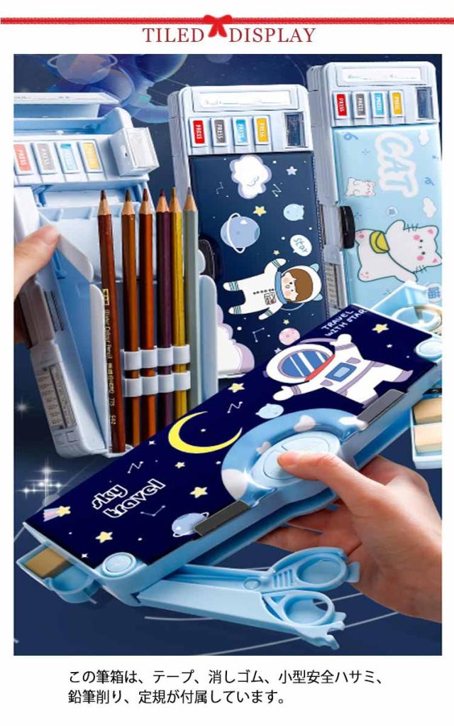ペンケース ふでばこ 筆箱 ぼたん筆箱 鉛筆削り付き ハサミ 消しゴム 物差し テープ収納リング 筆入れ 小物入れ 大容量 多機能 軽量 耐久性 マグネット コンパクト 男の子 女の子 小学生 小学校 ペンケース 文具 誕生日 プレゼント 送料無料