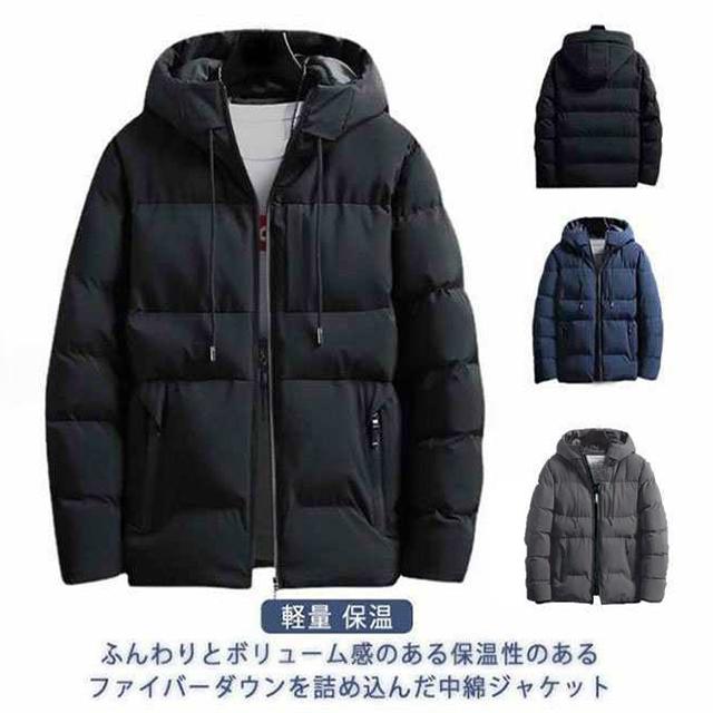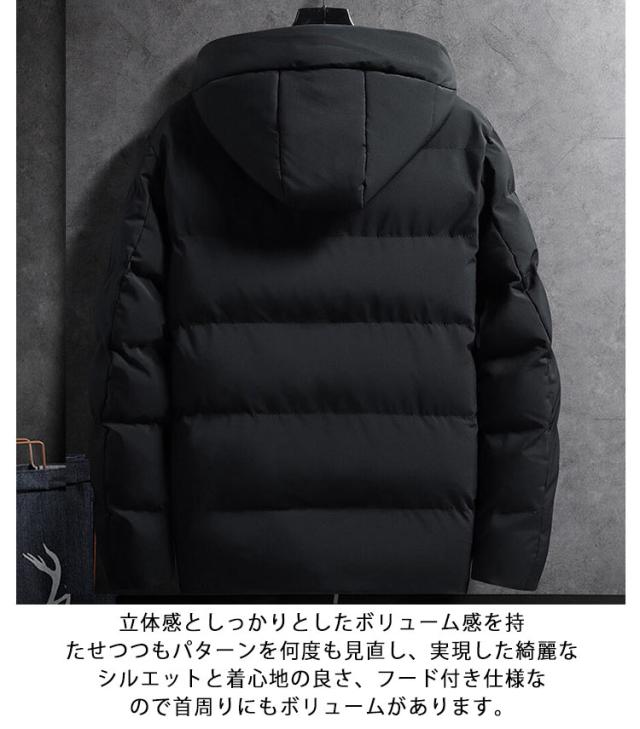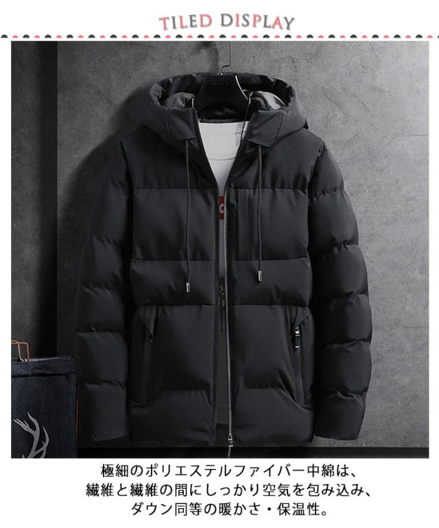 ダウンジャケット メンズ 中綿ジャケット ファイバーダウン 中綿ダウン ジャケット ブルゾン ショート丈 フード付き 防寒 暖かい 軽量 保温 防風 アウター カジュアル 通勤 通学 おしゃれ 秋冬 冬服 冬物 送料無料