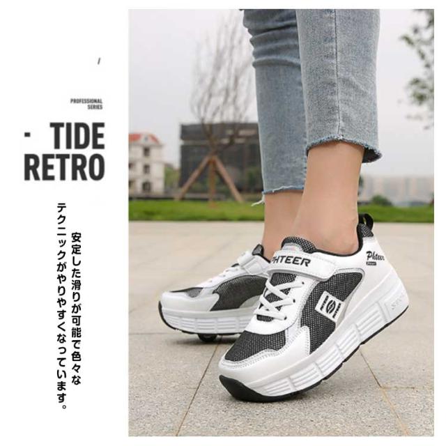 ローラーシューズ ローラースケート ローラー シューズ スケート 子供 大人 キッズ 二輪 輪収納できる かっこいい 初心者 練習 スニーカー ローラースニーカー メンズ 靴 学生 女の子 男の子 男女兼用 プレゼント キャンバス 誕生日 遊具 2way 通気性 おしゃれ 送料無料