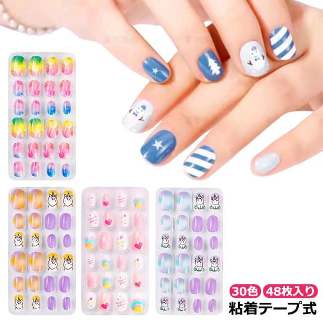 子供 キッズ 可愛い ジェルネイル ネイルチップ 子供用 ネイルチップ ショート 48枚入り クリスマス ネイルチップ つけ爪 雪の結晶 サンタ 雪だるま ネイルチップ ジェルネイルチップ 付け爪 ショート ラウンド スクエア アートチップ 送料無料