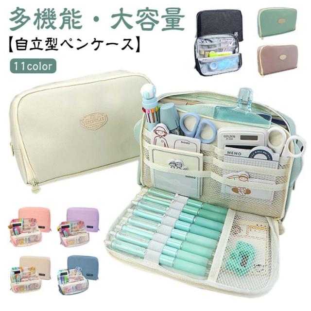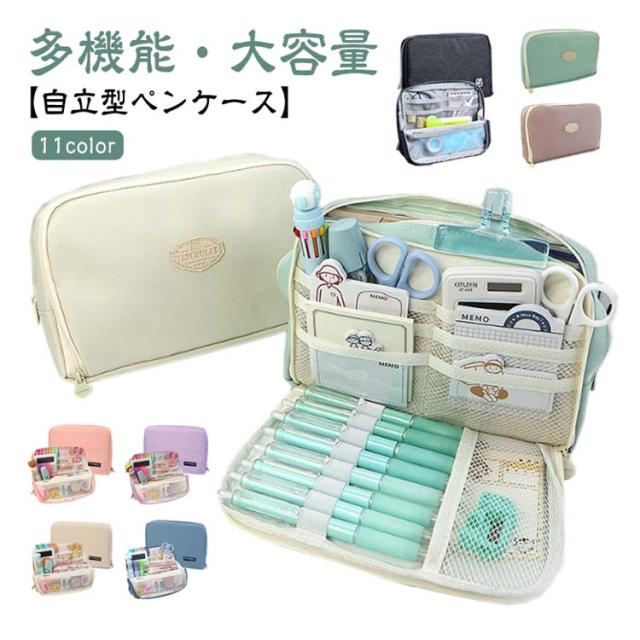 ペンケース 大容量 自立型 筆箱 手帳が入る ペンスタンド 立つ 文具 文房具 シンプル おしゃれ ふでばこ ぺんけーす かわいい 小学生 中学生 高校生 人気 収納 整理 多機能 韓国 新学期 入学祝い プレゼント 男女兼用