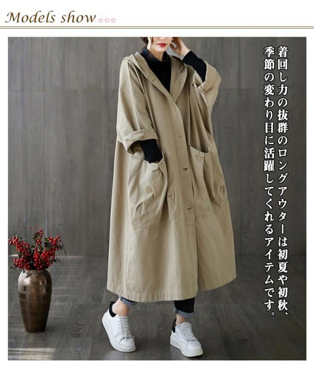 オーバーサイズ ロングコート レディース ロングパーカー 大きいサイズ ロング コート ミリタリーコート マウンテンパーカー アウター ビッグシルエット ゆったり おしゃれ シンプル 体型カバー フード付き 薄手 20代 30代 40代 50代 通勤 春秋冬
