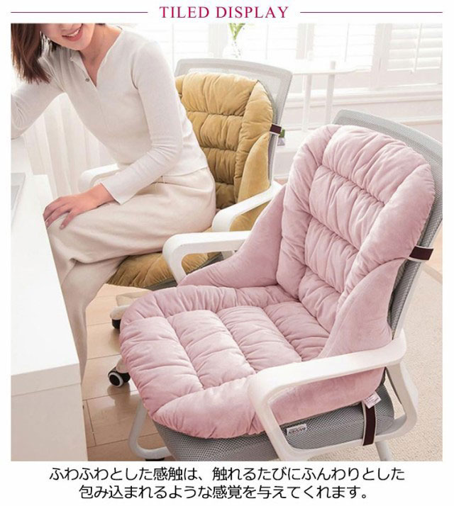 | ふわふわであたっかフランネル生地の背もたれ付き椅子クッション。 ふわふわとした感触は、触れるたびにふんわりとした包み込まれるような感覚を与えてくれます。 腰や背中まわりを温かく包み込むことで、冷えにくく長時間座っている方にもおすすめ!柔らかな中綿をたっぷりと詰め、長い間でも快適な座り心地。 座面と背面の立体クッションが、ソファのような座り心地を実現。 固定バンド付きなのでズレ落ち防止!様々なサイズの椅子に対応可能です! カバーは取り外し洗濯可能。 | |