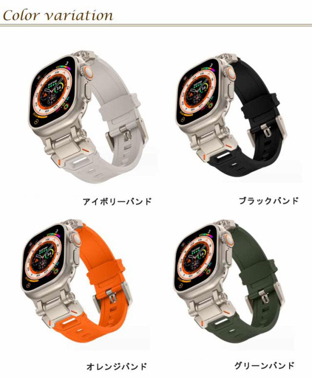 | サイズについての説明 | 対応機種: Apple Watch Ultra(49mm) Apple Watch Series 8 (45mm) Apple Watch Series 7 (45mm) Apple Watch Series 6 (44mm) Apple Watch Series SE (44mm) Apple Watch Series 5 (44mm) Apple Watch Series 4 (44mm) Apple Watch Series 3 (42mm) Apple Watch Series 2 (42mm) Apple Watch Series 1 (42mm) |